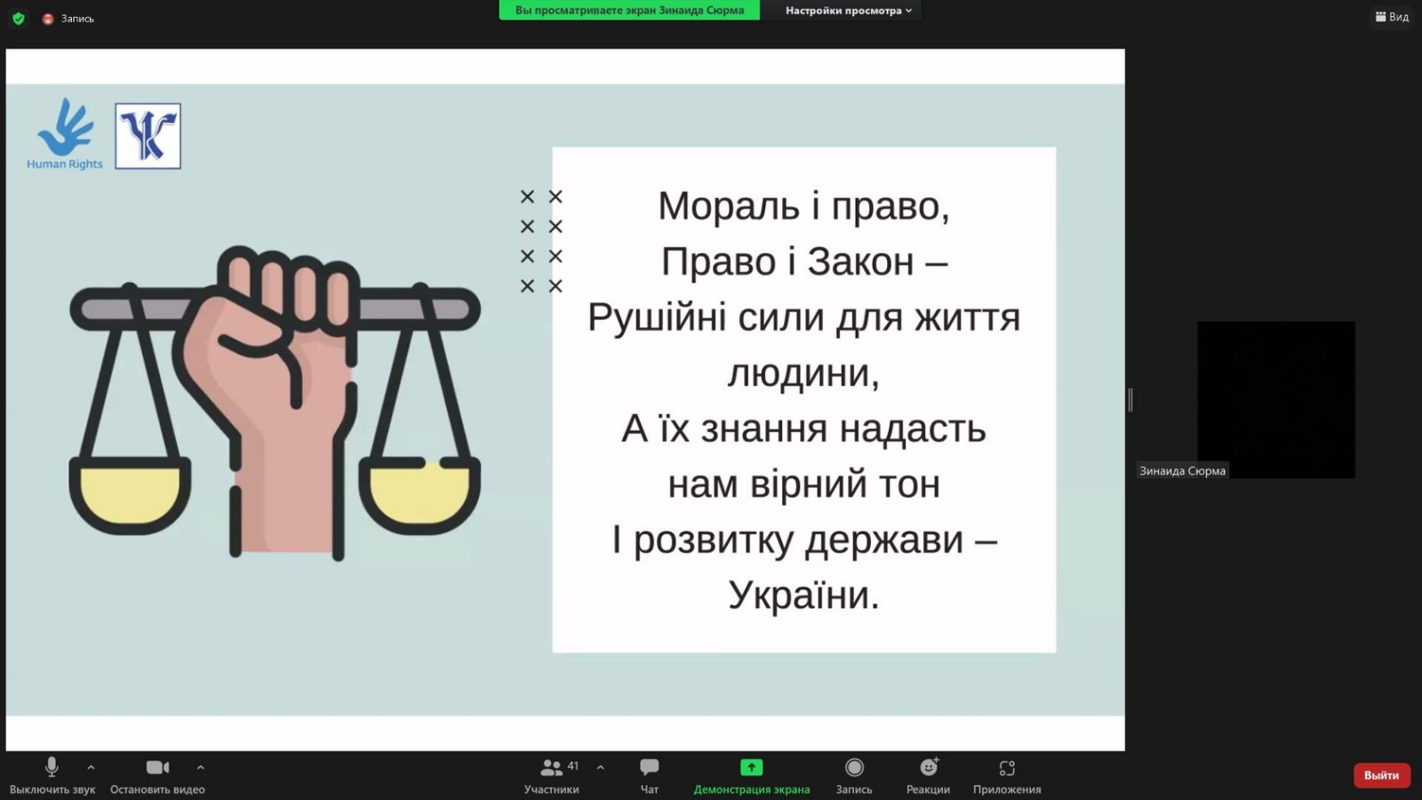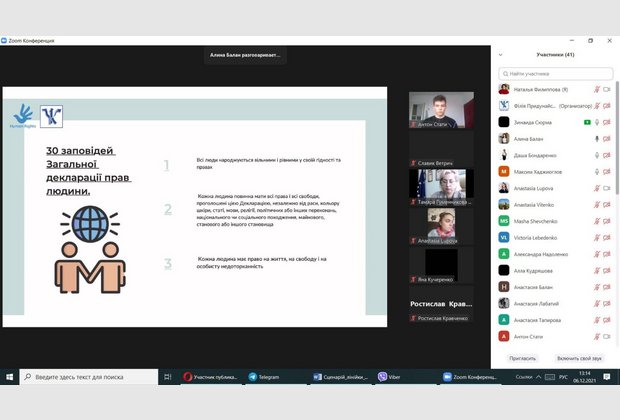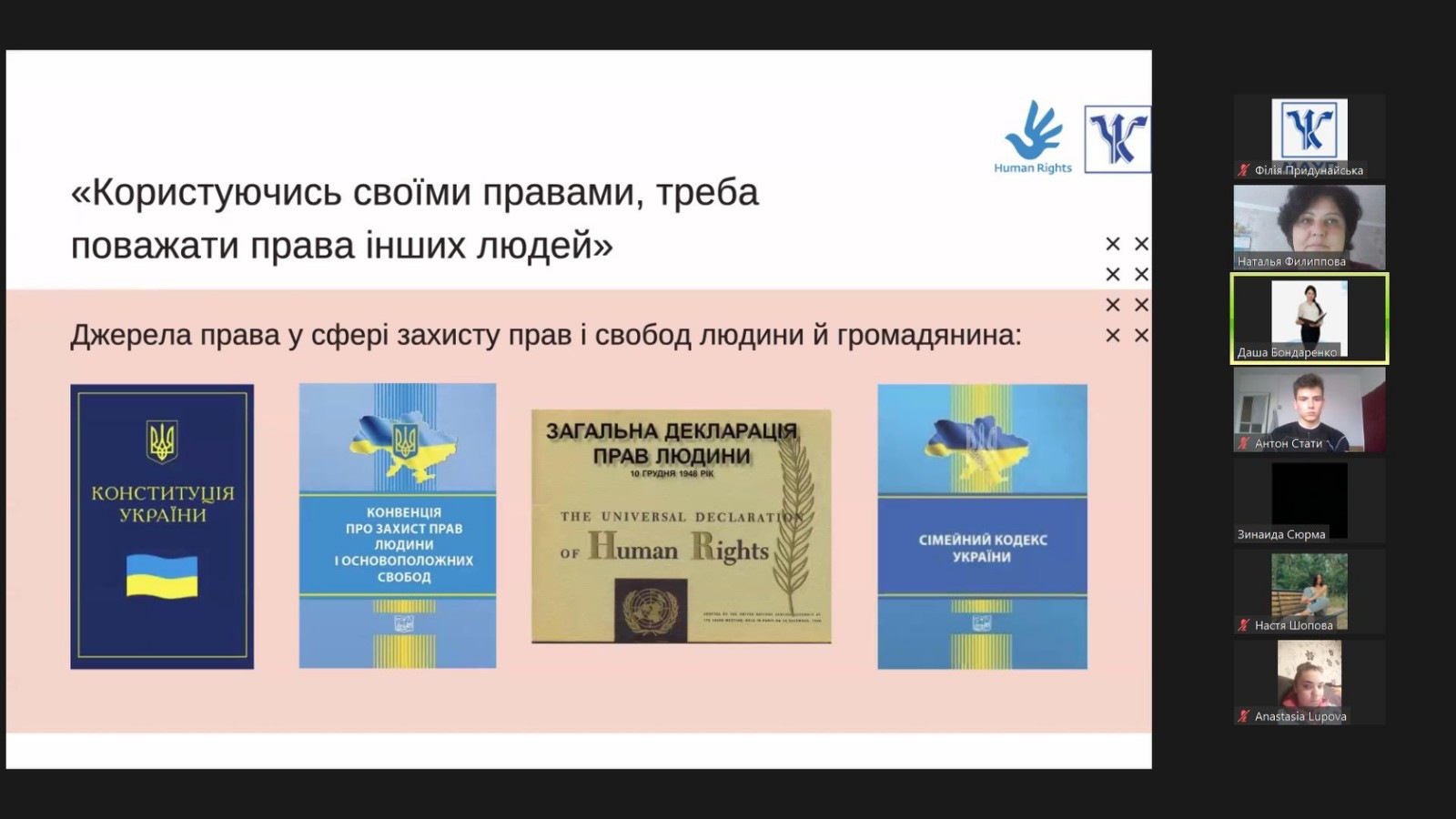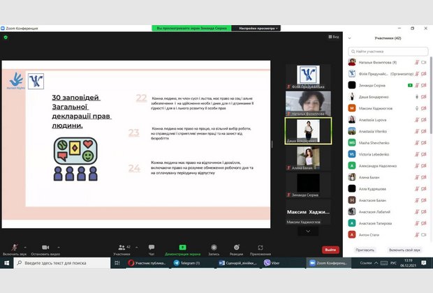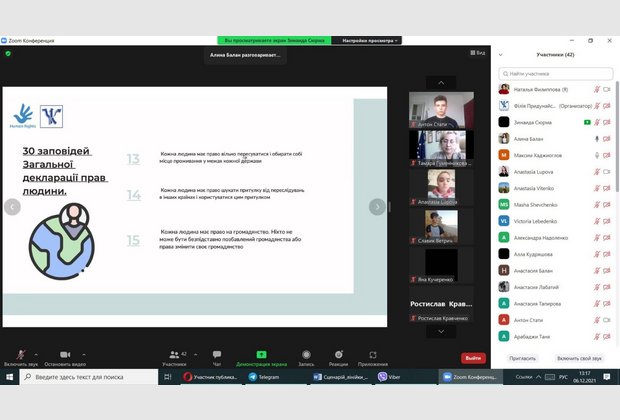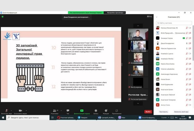 Мета заходу: поглиблення знань здобувачів вищої освіти про права та обов’язки людини і громадянина, які закріплені в Загальній Декларації прав людини та в Конституції України.