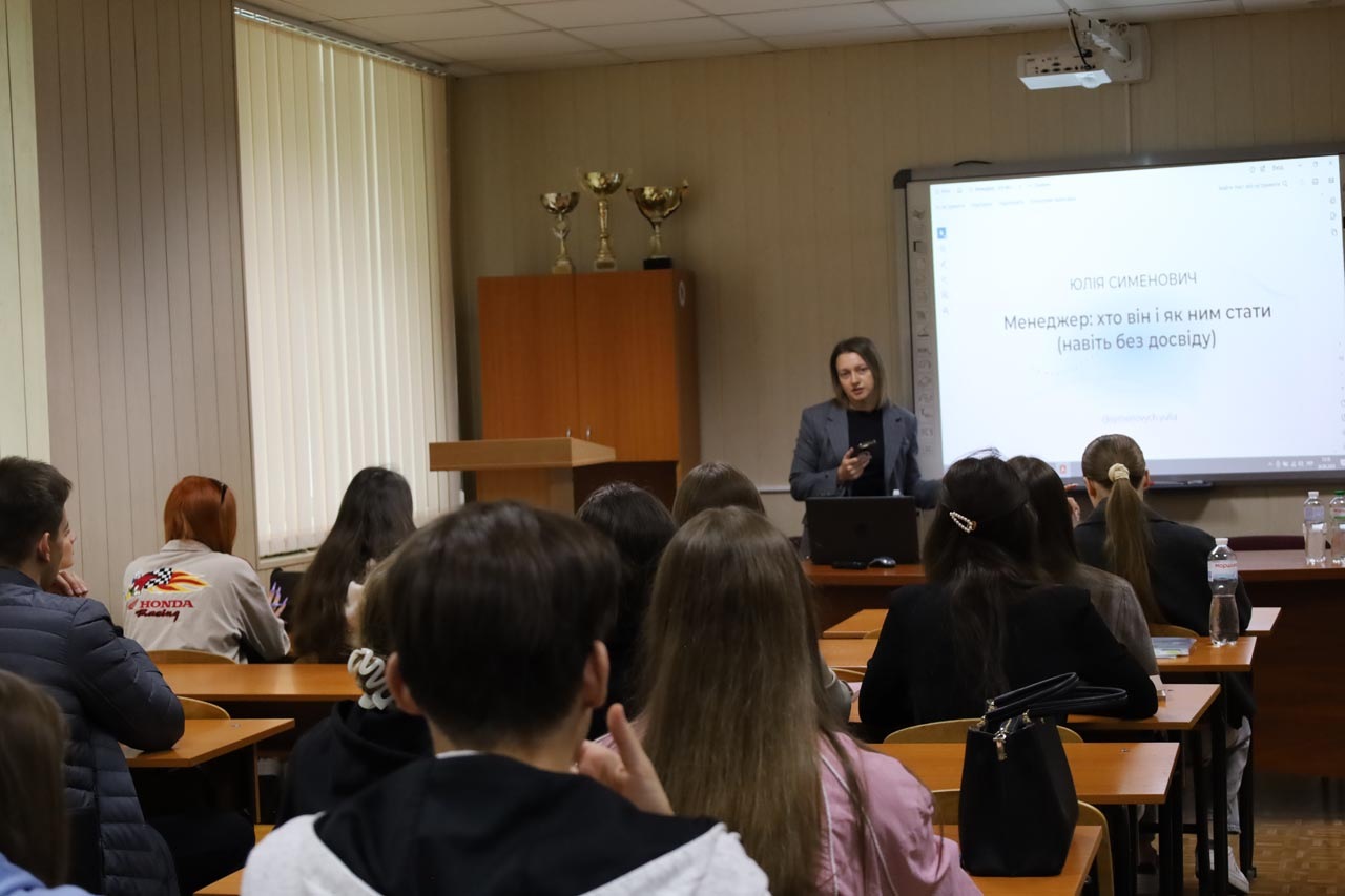 Тема гостьової лекції – «Менеджер: хто він і як ним стати, навіть без досвіду» – зібрала молодь, яка прагне розвиватися та будувати успішну кар’єру.
