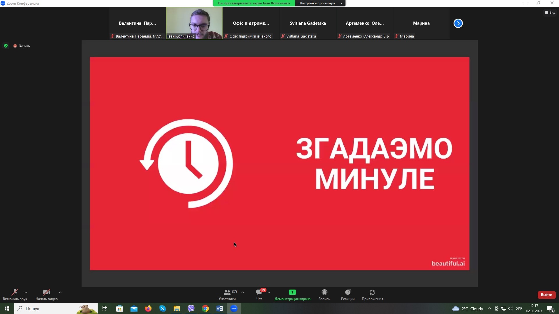 2 лютого 2023 року Офіс підтримки вченого за участі Фонду Східна Європа Фонд Східна Європа Програма EGAP, а саме регіонального координатора – Дар’ї Радзіковській та запрошеного спікера - Івана Копиченка, експерта програми EGAP.