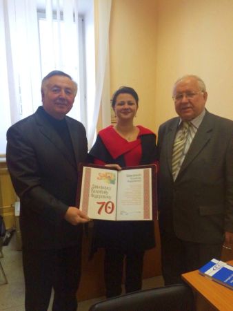 Ректор Міжрегіональної Академії управління персоналом Микола Несторович Курко привітав завідуючого кафедри зовнішніх економічних відносин Інституту міжнародних відносин та лінгвістики ім. Аверроеса Валентина Федоровича Данильчука із 70-річчям.