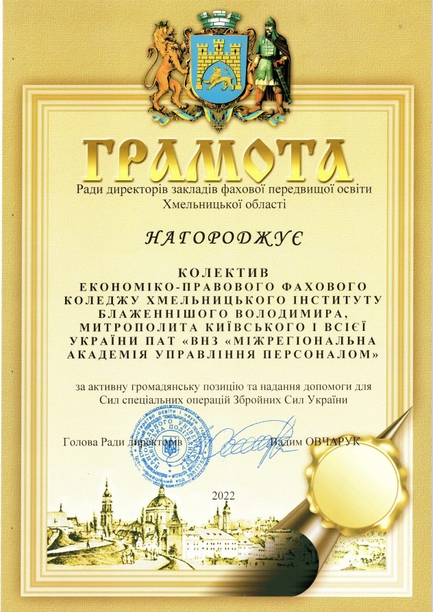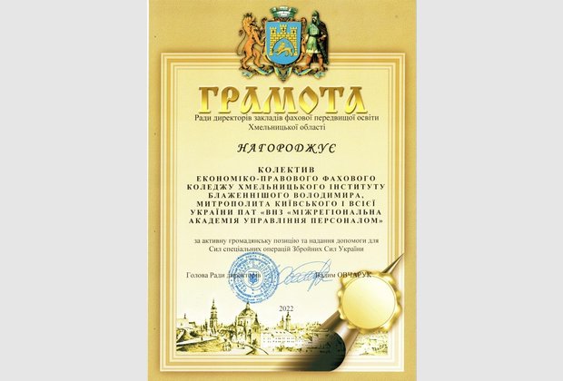 Колектив Хмельницького економіко-правового фахового коледжу МАУП відзначено за волонтерську діяльність