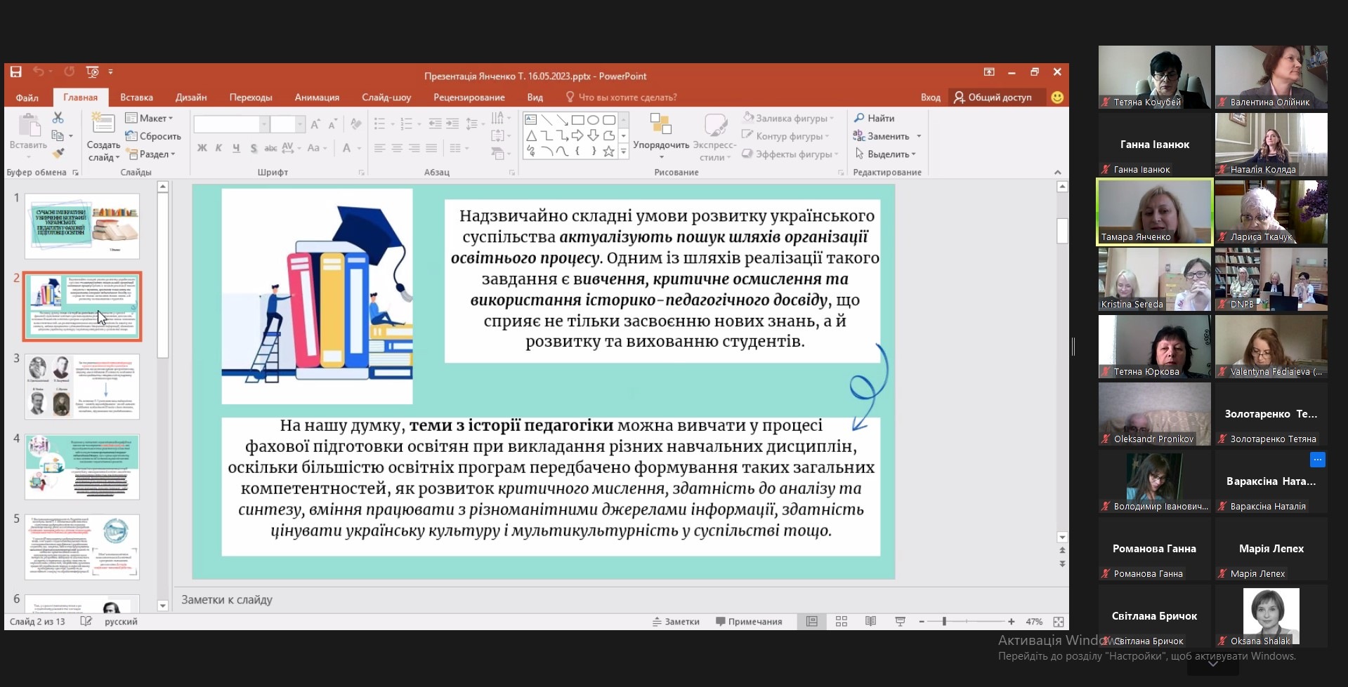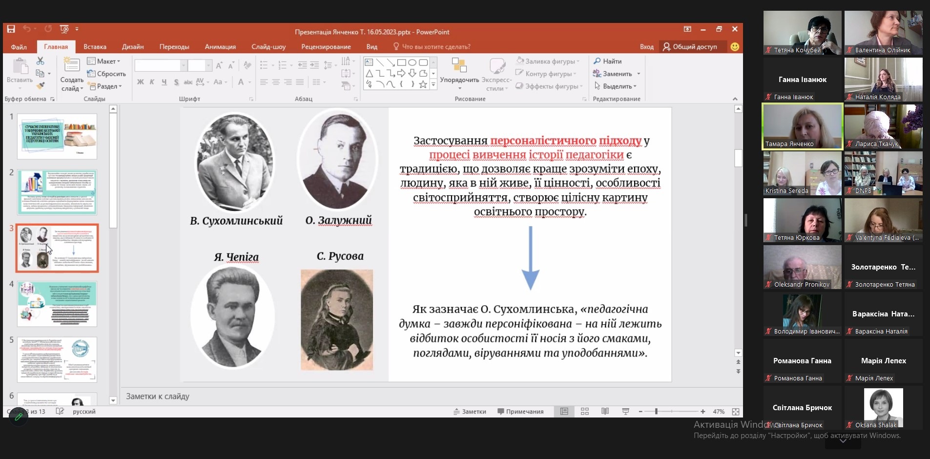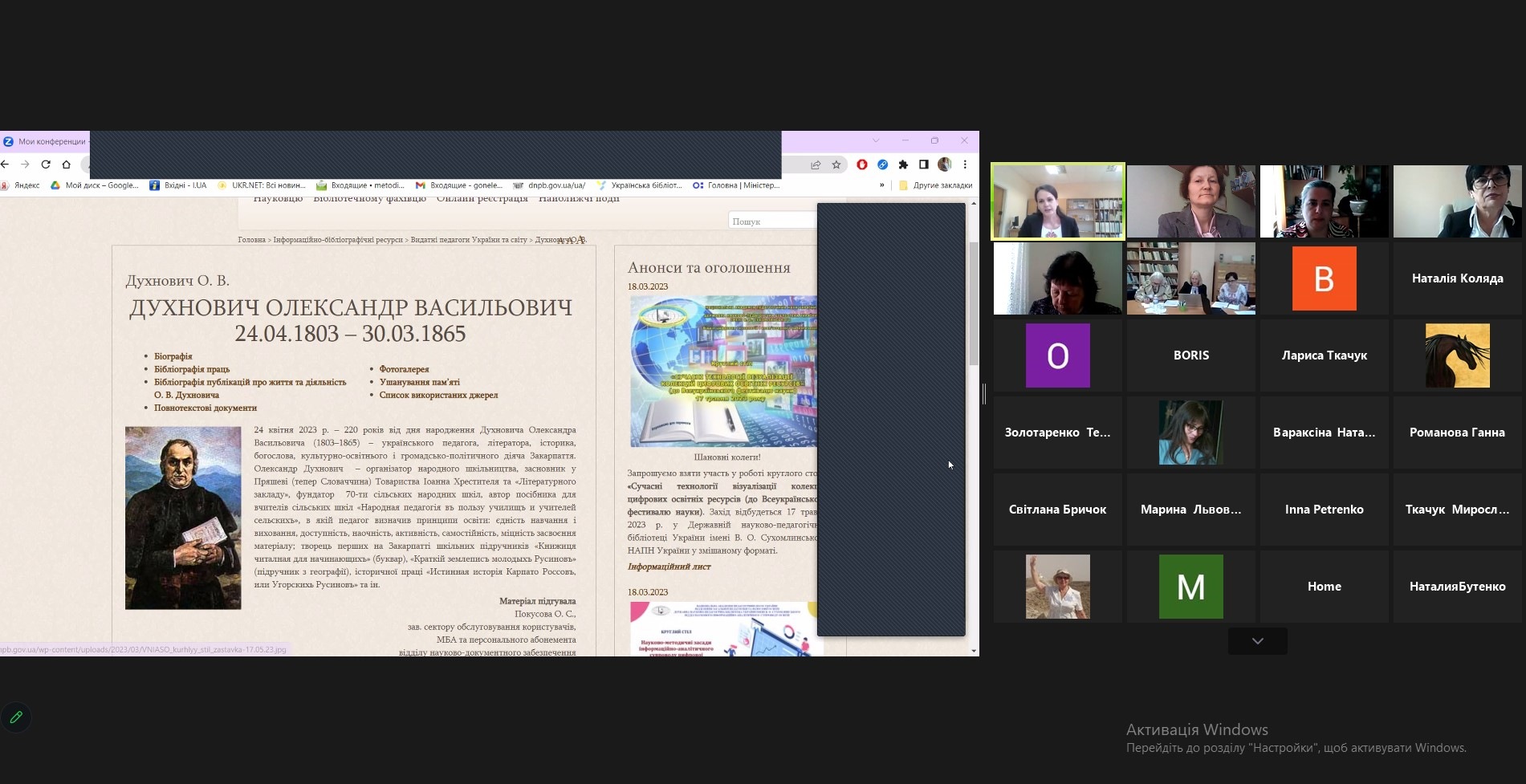 16 травня 2023 року доцент кафедри психології Хмельницького інституту МАУП Валентина Олійник взяла участь у VІІІ Всеукраїнській науково-практичній конференції з історії освіти з міжнародною участю «Педагогічна біографіка в освітньо-науковому просторі в умовах воєнної доби: нові виклики і завдання».