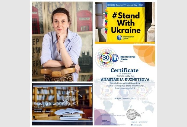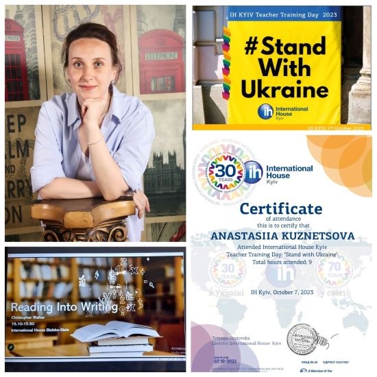 07 жовтня 2023 року старший викладач кафедри загальнонаукових, соціальних та поведінкових дисциплін Одеського інституту МАУП Анастасія Валеріївна Кузнецова взяла участь в онлайн-конференції для викладачів англійської мови «Stand with Ukraine», організатором якої виступив International House Kyiv - офіційний представник в Україні міжнародного концерну IHWO (International House World Organization).