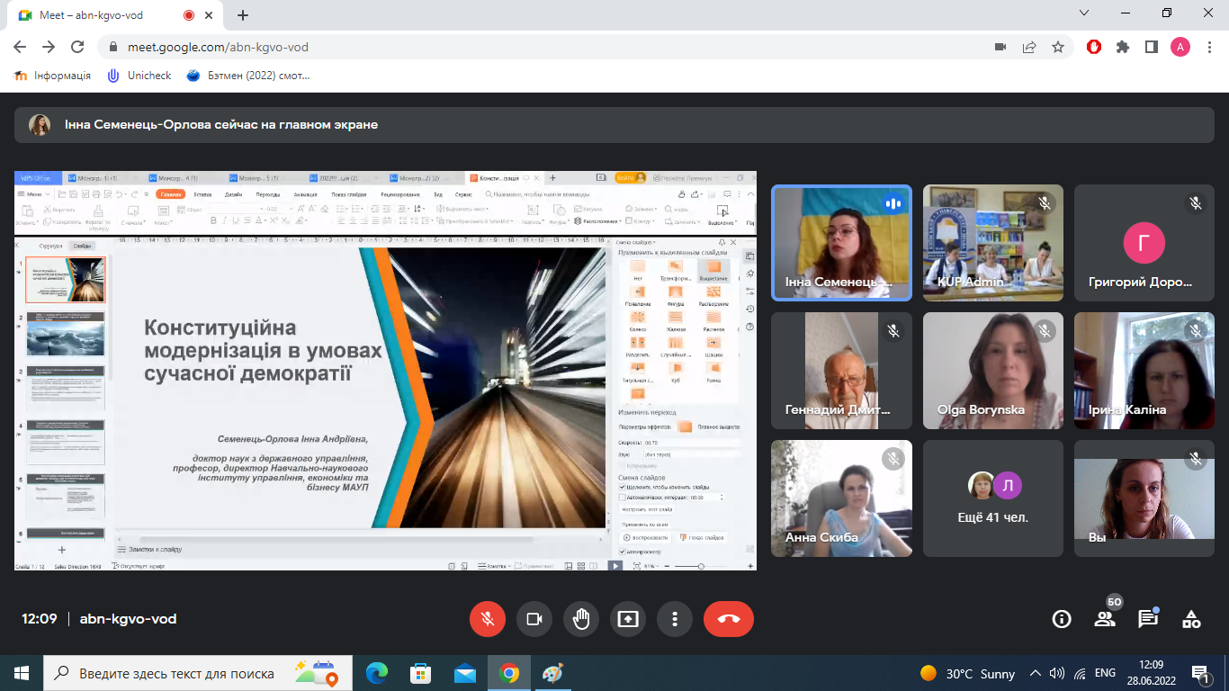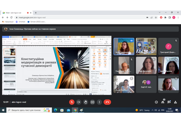 Викладачі Навчально-наукового інституту управління, економіки та бізнесу беруть участь у Всеукраїнській науково-практичній конференції «Конституція України: держава і право в умовах воєнного стану». З вітальним словом виступив ректор МАУП Гончаренко Михайло Федорович, наголосивши на актуальності заявленої теми заходу в умовах російської військової агресії проти України та пов'язаною з цим систематичністю випадків порушення прав людини. З доповідями виступили директор інституту Семенець-Орлова І.А. («Конституційна модернізація в умовах сучасної демократії») та доцент кафедри публічного адміністрування МАУП Ольга Леонідівна Боринська («Конституція Пилипа Орлика: історичні обставини і політичне значення»).