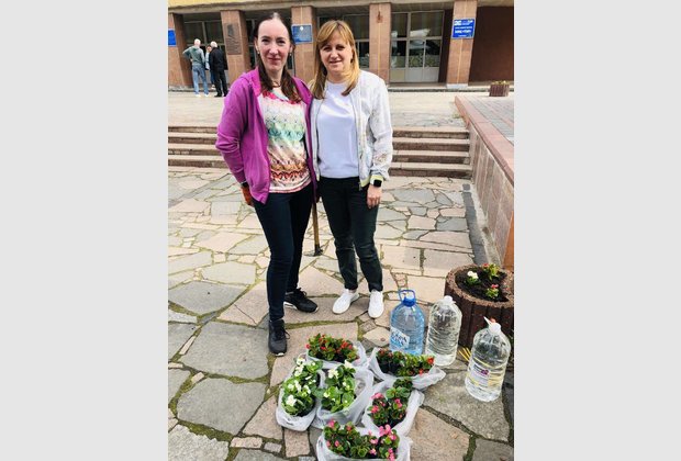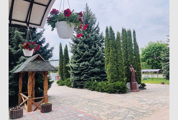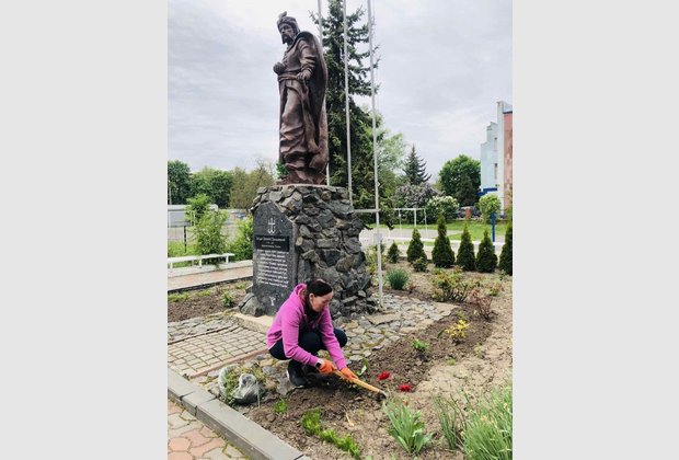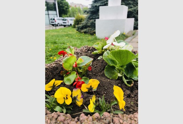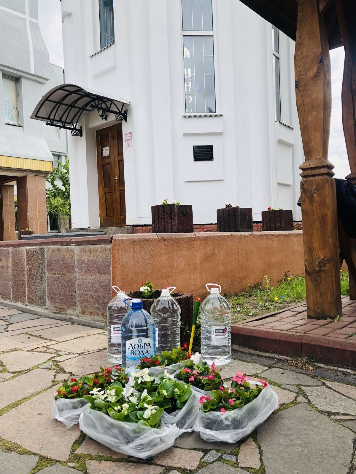Тому, у гарний травневий день ми всі разом гарно попрацювали на наших газонах та клумбах. Висадили квіти, пропололи клумби та прибрали на храмовій площі. Нам допомагали дітки з дитячого садочка, які були надзвичайно раді знову бачити красу навколо себе.