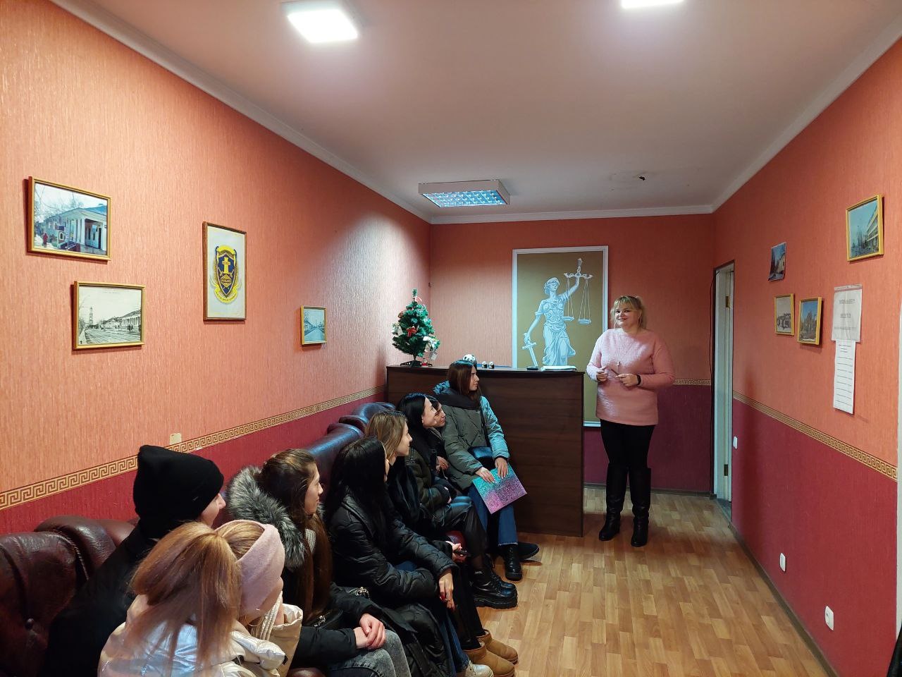 Так, сьогодні, 26.01.2023 р. другокурсники під керівництвом викладача кафедри права Ніколенко Л.І. відвідали адвоката Соколову Г.М., яка є співробітником АБ «Феміда».