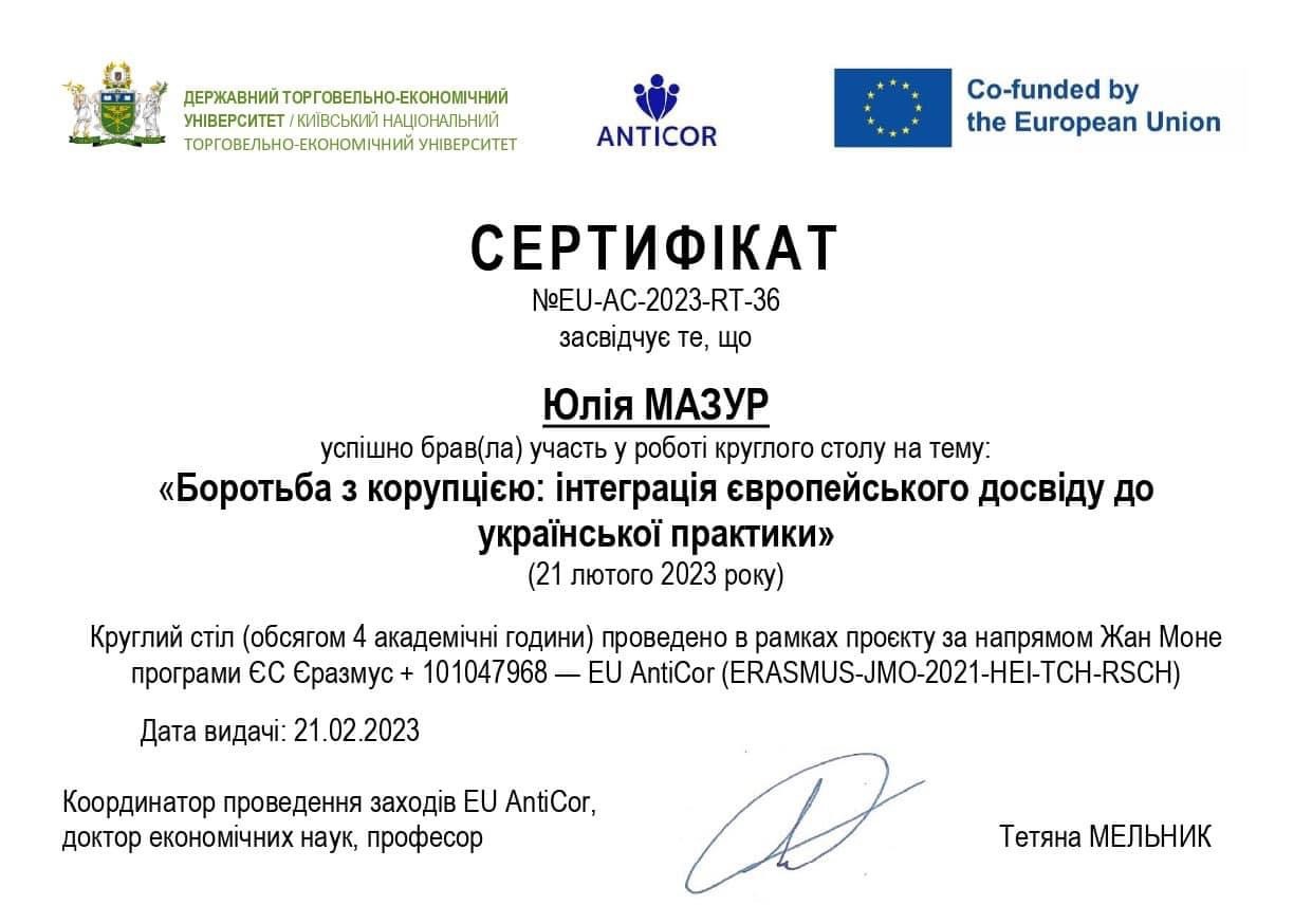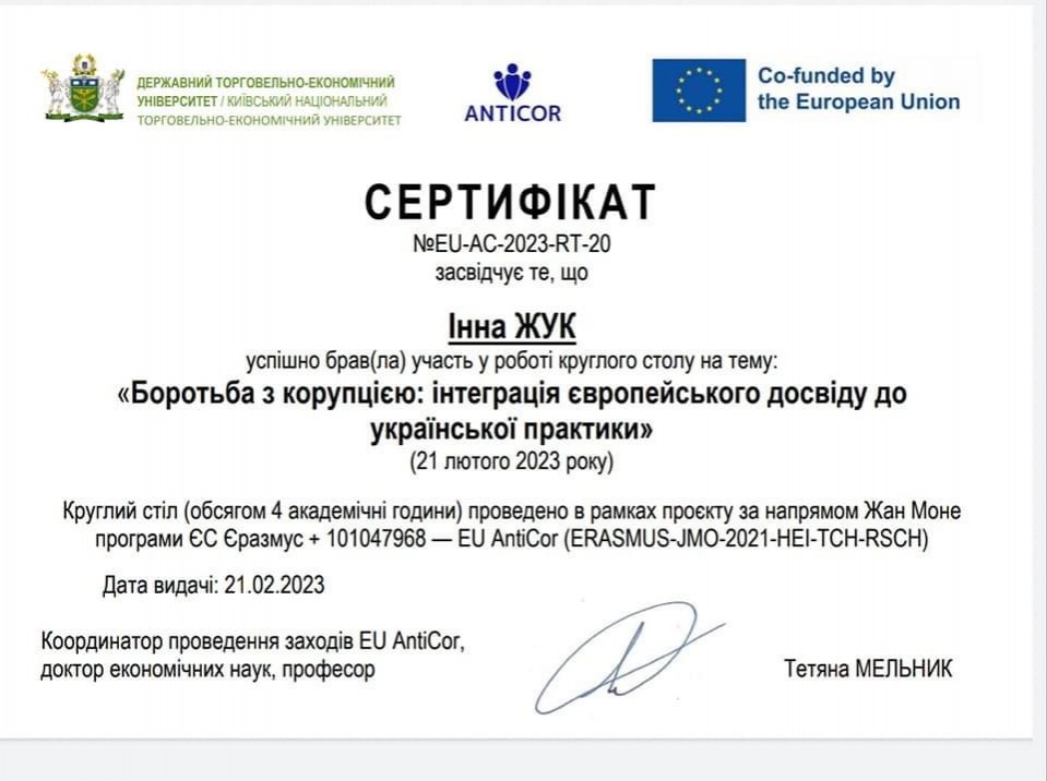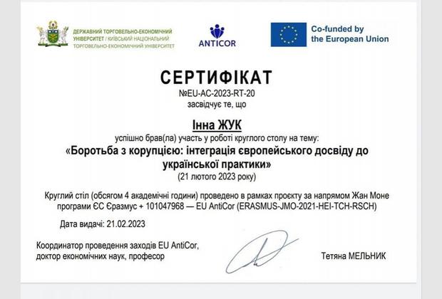 Декан Навчально-наукового інституту управління, економіки та бізнесу Юлія Мазур та доцент інституту Інна Жук взяли участь у круглому столі на тему презентації кращих європейських практик боротьби з корупцією.