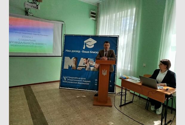 14 квітня 2026 року у Придунайській філії ПрАТ «ВНЗ «МАУП» відбувся круглий стіл із заступником начальника Ізмаїльської філії ДП «АМПУ» з операційної діяльності Ігнатенком Максимом Петровичем та фахівцем з публічних закупівель І категорії відділу з організації процедур закупівель та договірної роботи Ізмаїльської філії ДП «АМПУ» Сарлачан Наталією Валеріївною.