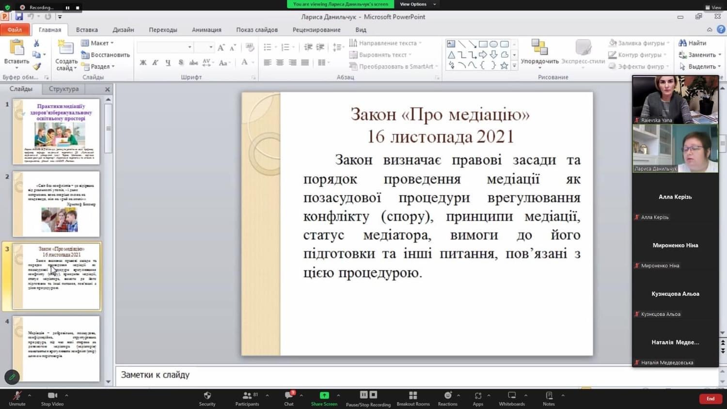 Модераторами заходу виступили: Данильчук Л.О., доктор педагогічних наук, професор (ДЗ «Луганський національний університет імені Тараса Шевченка») ; Раєвська Я.М., доктор психологічних наук, професор (Навчально-науковий інститут психології та соціальних наук МАУП).