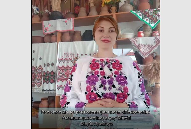 Студентки Літературної студії Хмельницького економіко-правового фахового коледжу МАУП Наталія Маначин та Дарія Маначин, магістрантка спеціальності «Психологія» Хмельницького інституту МАУП Марія Яремчук взяли участь у проєкті «Рушник Єдності». Студентки Літературної студії Наталія і Дарія стисло розповіли про вишивку Подільського рушника, прекрасно виконали пісню «Ой, рушник, рушничок – кольорова доріжка», Марія свою розповідь розбавила майстерним декламуванням вірша жестовою мовою Наталки Поклад «Наша хата».