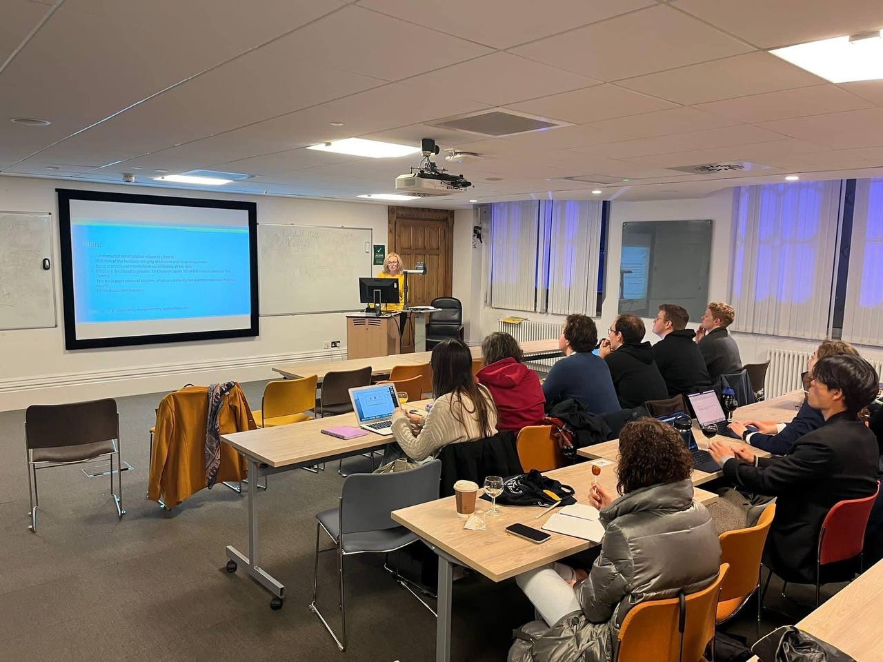 Крім того, Лариса представила та провела семінар зі студентами магістерської програми Erasmus Mundus з міжнародного права глобальної безпеки, миру та розвитку в Університеті Глазго (Великобританія). Це студенти з різних країн з відмінним показниками у навчанні. Обговорювали претензію на компенсацію Україні проти російської федерації. Займалися практичними темами щодо підстав міжнародної відповідальності держави, юрисдикції міжнародних судових установ, обґрунтування вимог, виконання рішень міжнародного суду тощо.