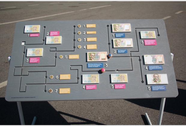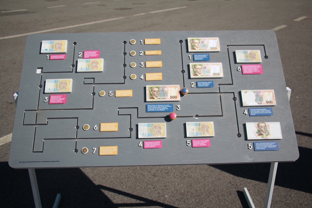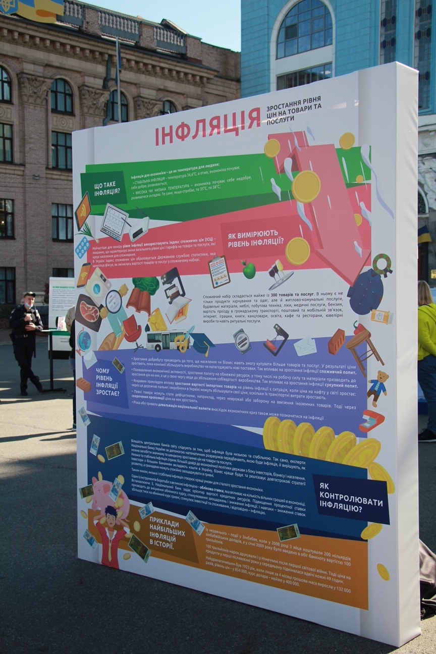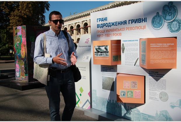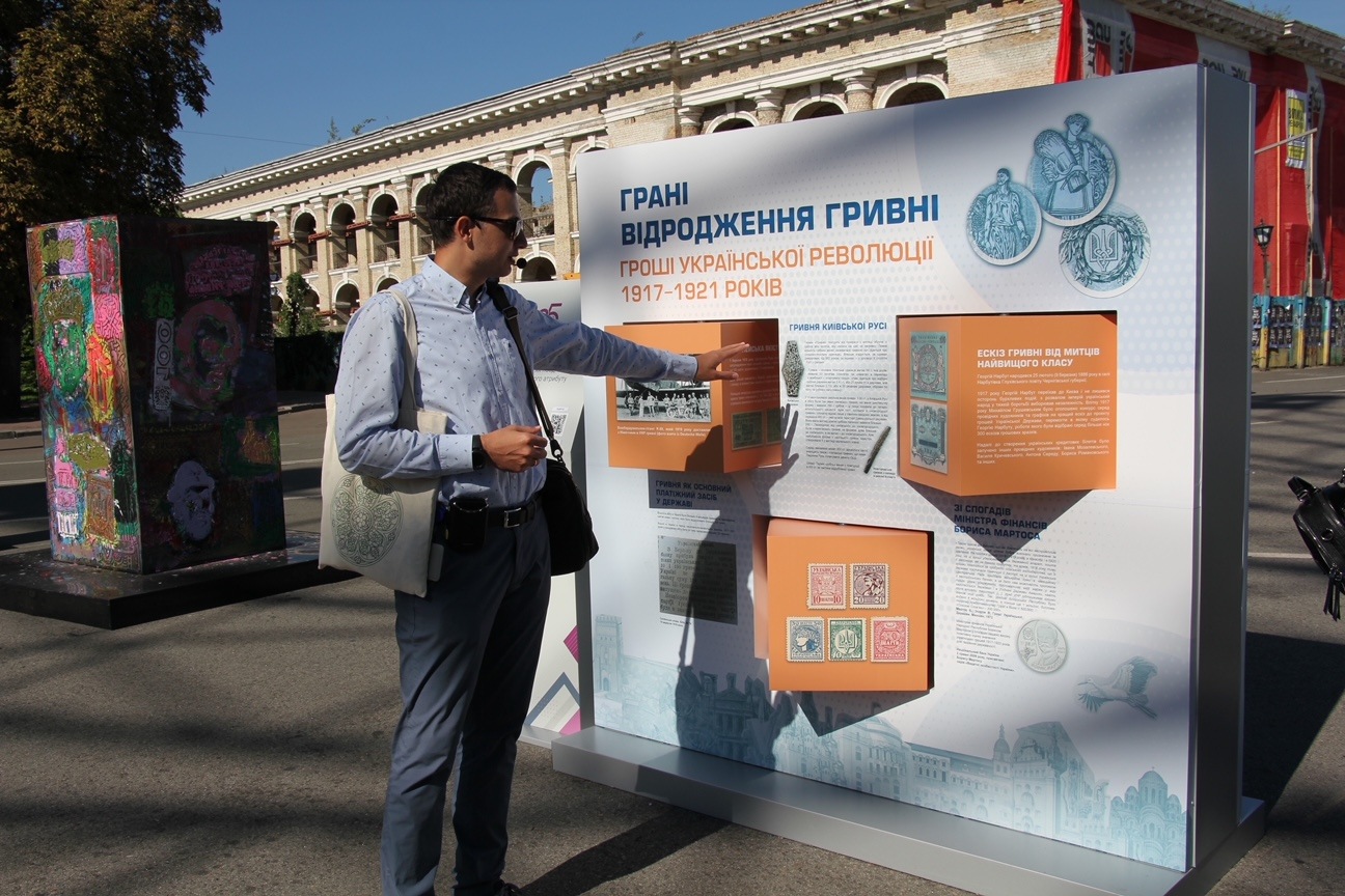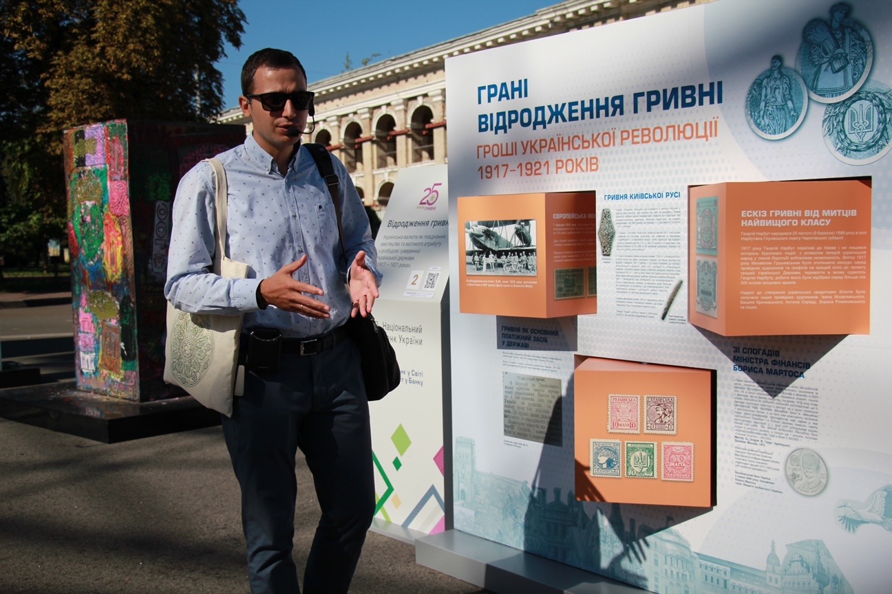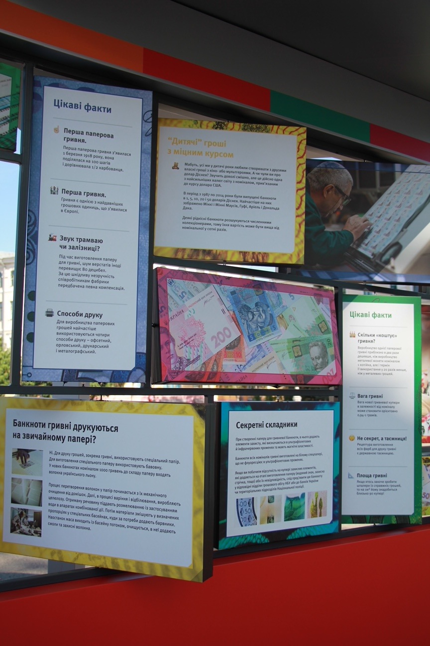 Під час виставки гід Роман ознайомив відвідувачів з цікавими фактами унікальності України у фінансовому просторі. Студенти познайомилися з історією появи та формування грошей в Українській державі, про готівкову та безготівкову грошову одиницю, ідею виникнення банкомата, а також про секретні складники які використовують фахівці, де беруть папір для гривні і скільки живе паперова гривня.