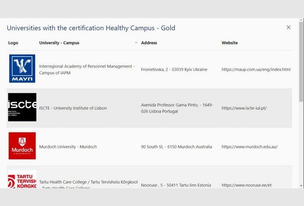 FISU Healthy Campus нагороджує університети, які заохочують здоровий спосіб життя у своїх кампусах. Ті, хто пропагує здоровий спосіб життя для своїх студентів і всієї спільноти університетського містечка, отримують відповідний сертифікат на основі оцінки цих 100 критеріїв.