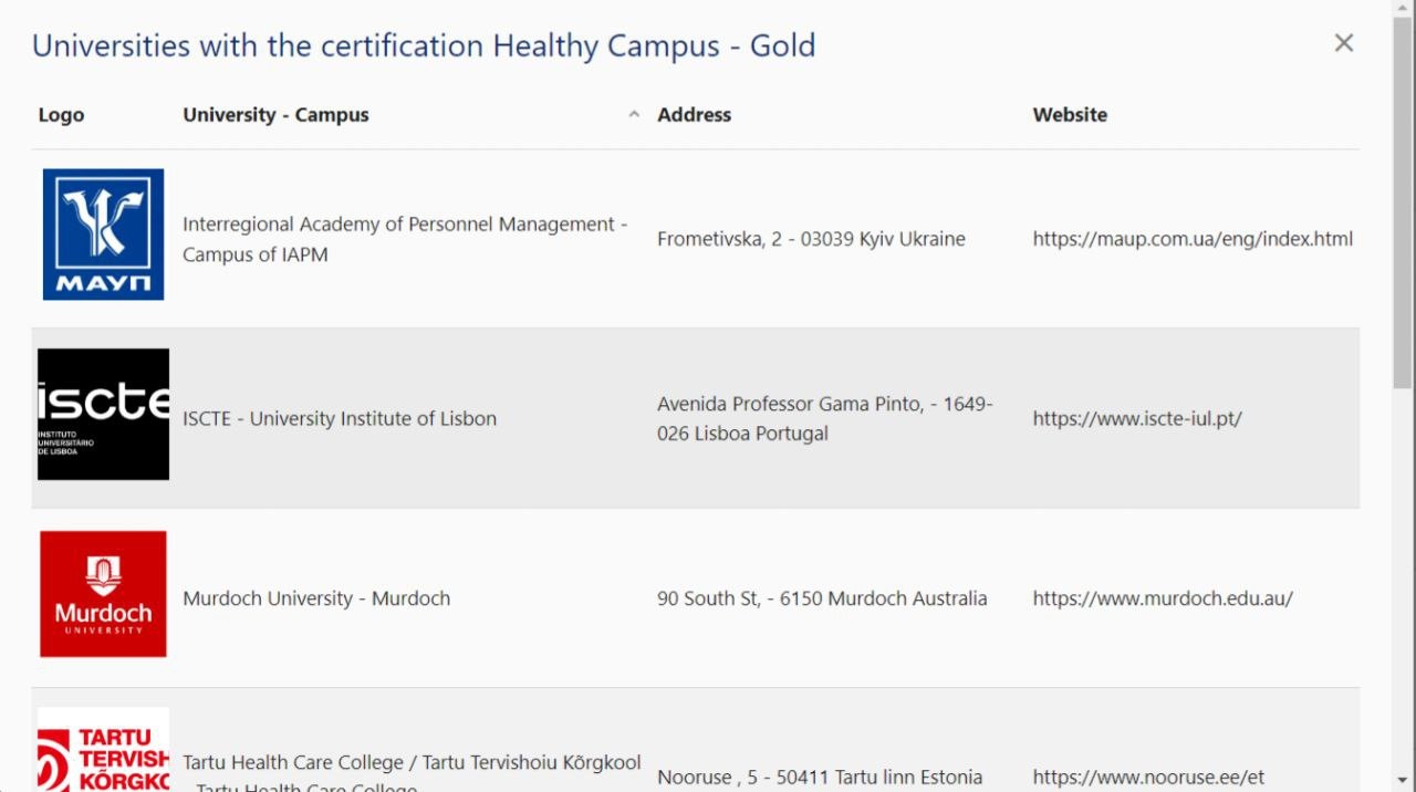 Наразі в світі цю сертифікацію пройшли 54 університета, 7 з них отримали золотий сертифікат.