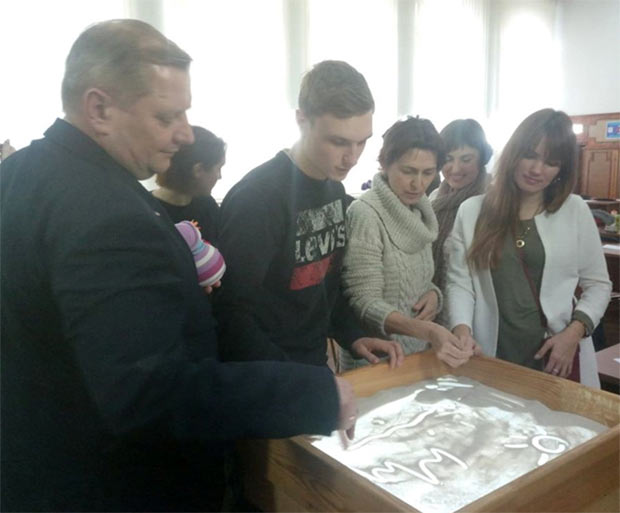 Всі учасники конференції із задоволенням створюють пісочні картини на майстер-класі з пісочної терапії