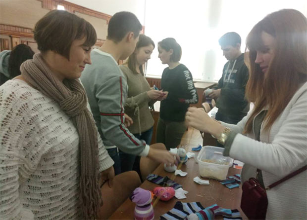 Майстер-клас із виготовлення новорічних сніговичків проводить викладач Г. В. Лягодович