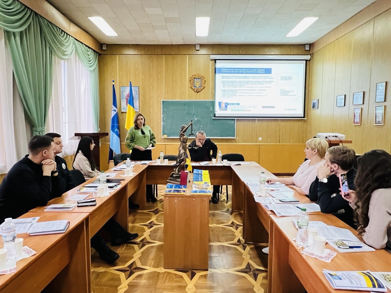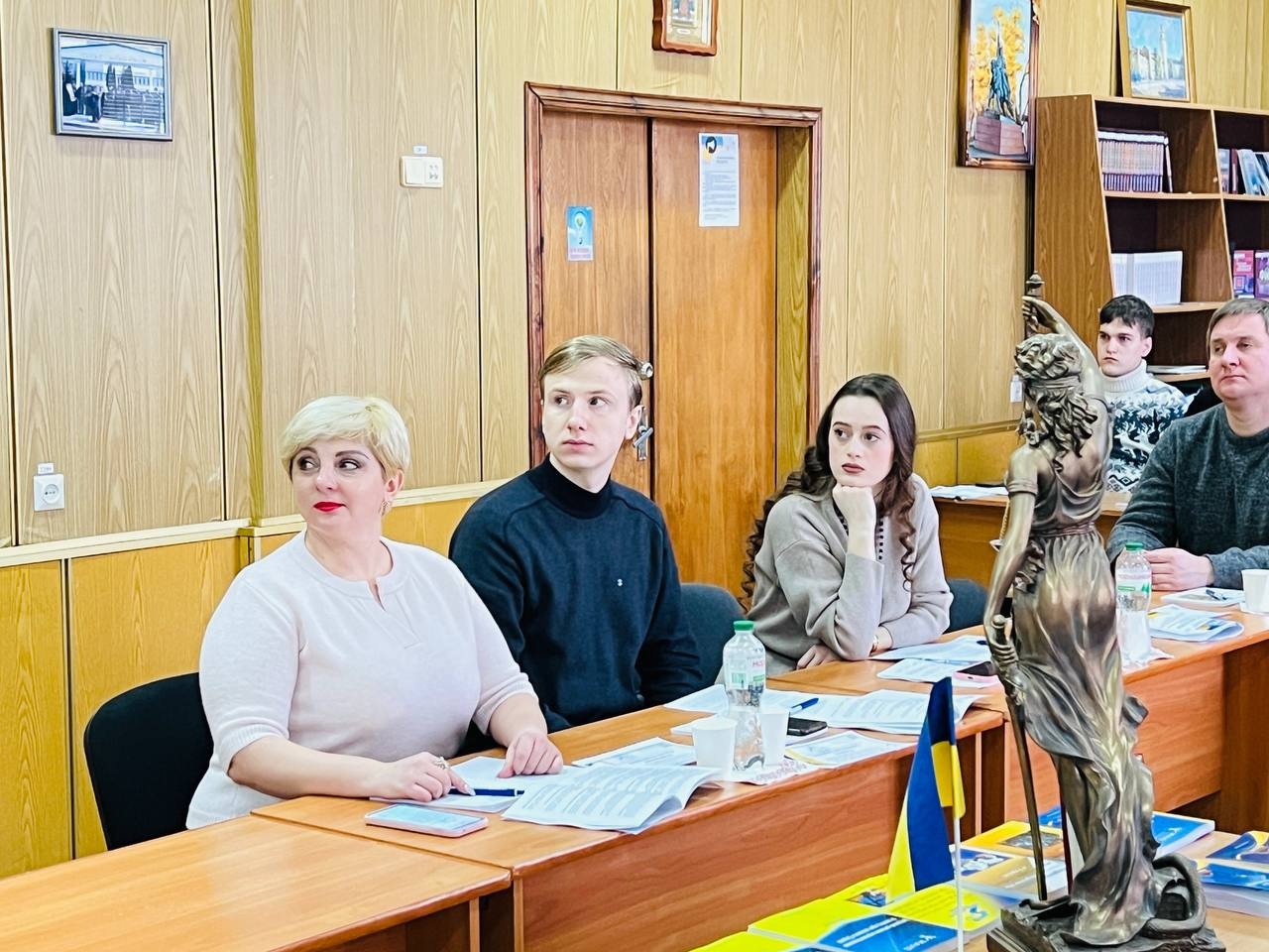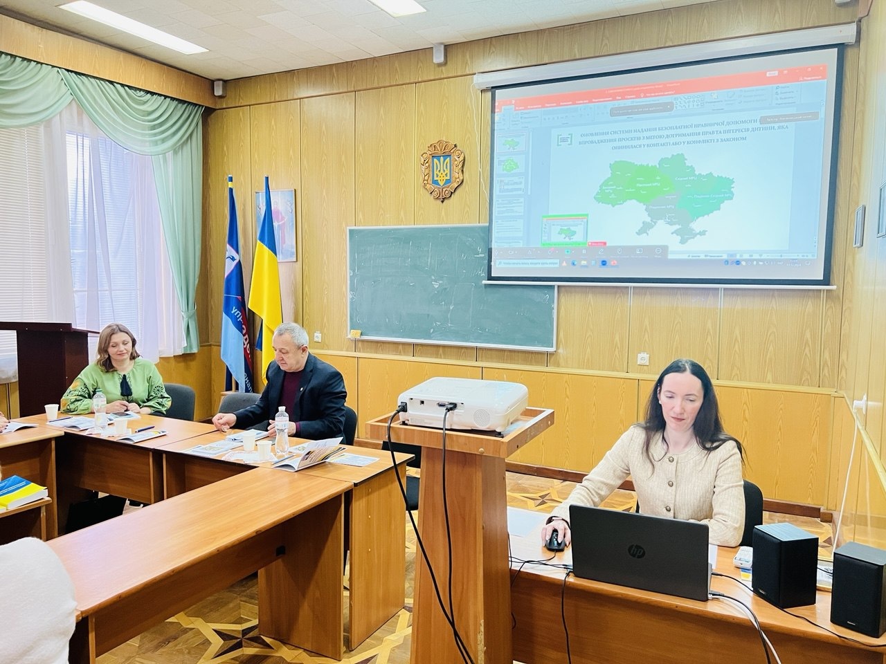 Ольга Чорна, заступниця начальника Хмельницького відділу надання безоплатної правничої допомоги Центрально-Західного управління надання безоплатної правничої допомоги Північного міжрегіонального центру з надання безоплатної правничої допомоги доповідала про діяльність Центру в період війни, надання послуг безоплатної вторинної правової допомоги особам, які мають таке право. Дар’я Кучер, адвокатка ГО «Подільська правова ліга» звернула увагу на особливості діяльності громадських організацій у період воєнного стану, важливість забезпечення захисту прав людини в умовах воєнного стану інститутами громадянського суспільства, можливості громадських організацій в сфері реалізації та захисту прав осіб. Святослав Кошель - заступник директора Хмельницького міського центру соціальних служб доповів присутнім про діяльність Центру в період воєнного стану.
