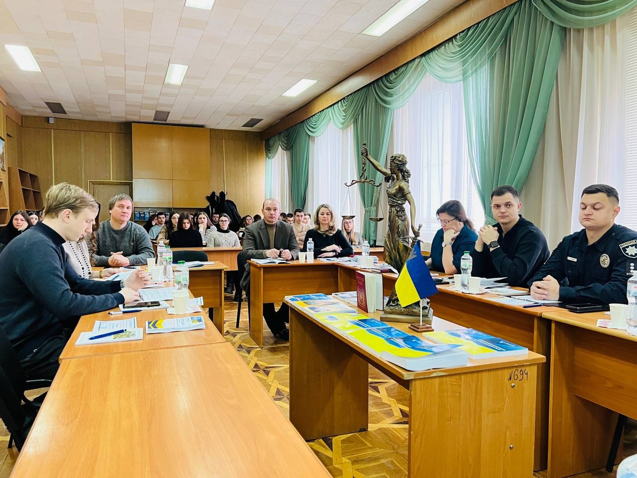 Роман Мурава - старший інспектор з особливих доручень відділу зв’язків з громадськістю Управління патрульної поліції в Хмельницькій області зосередив увагу на діяльності патрульної поліції у сфері захисту прав і свобод людини і громадянина, особливо в рамках реагування на випадки порушення водіями правил дорожнього руху, у своїй доповіді звернули увагу на неврегульованість питання надання особі перекладача або забезпечення безпеки транспортного засобу. Олександр Власюк, старший оперуповноважений з особливо важливих справ відділу протидії кіберзлочинам в Хмельницькій області Департаменту кіберполіції Національної поліції України звернув увагу у своєму виступі на важливість дотримання інформаційної гігієни, розповів про проєкти, створені волонтерами та небайдужими громадянами за сприяння Кіберполіції України – проєкт «BRAMA», що став сильною ініціативою протидії російській пропаганді в медіа-просторі. Руслана Мартьянова, юрист з міграційного права підняла важливе та актуальне питання прав іноземців те осіб без громадянства. Валентин Зьолка, доктор юридичних наук, доцент доповідав про правову природу доплати працівникам за підтримання бойової готовності військової частини. Віктор Мушенок, доктор юридичних наук, професор доповів присутнім про засади формування доходів держави як складова забезпечення її безпеки