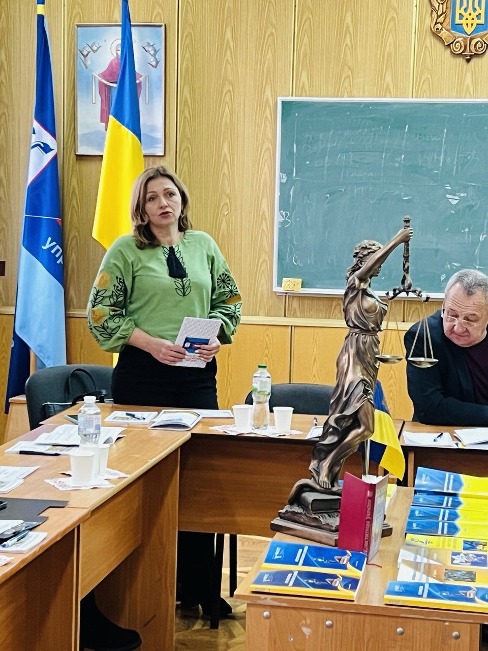 Федір Медвідь, доктор наук в галузі політології, кандидат філософських наук зосередив увагу присутніх на захисті прав людини в умовах воєнного стану. Надія Бондаренко-Зелінська, кандидатка юридичних наук, професорка звернула увагу у своїй доповіді на проблему доказування у справах по спорах щодо грошових зобов’язань.