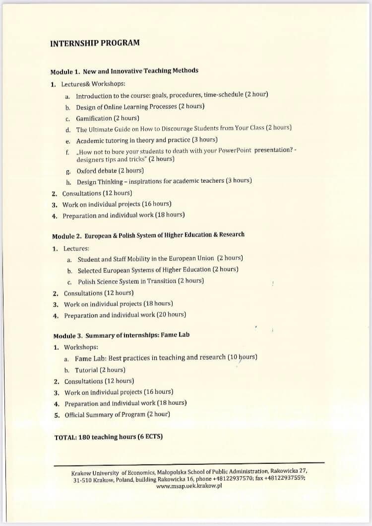 Міжнародне стажування на базі Uniwersytet Ekonomiczny w Krakowie (ННІУЕБ)