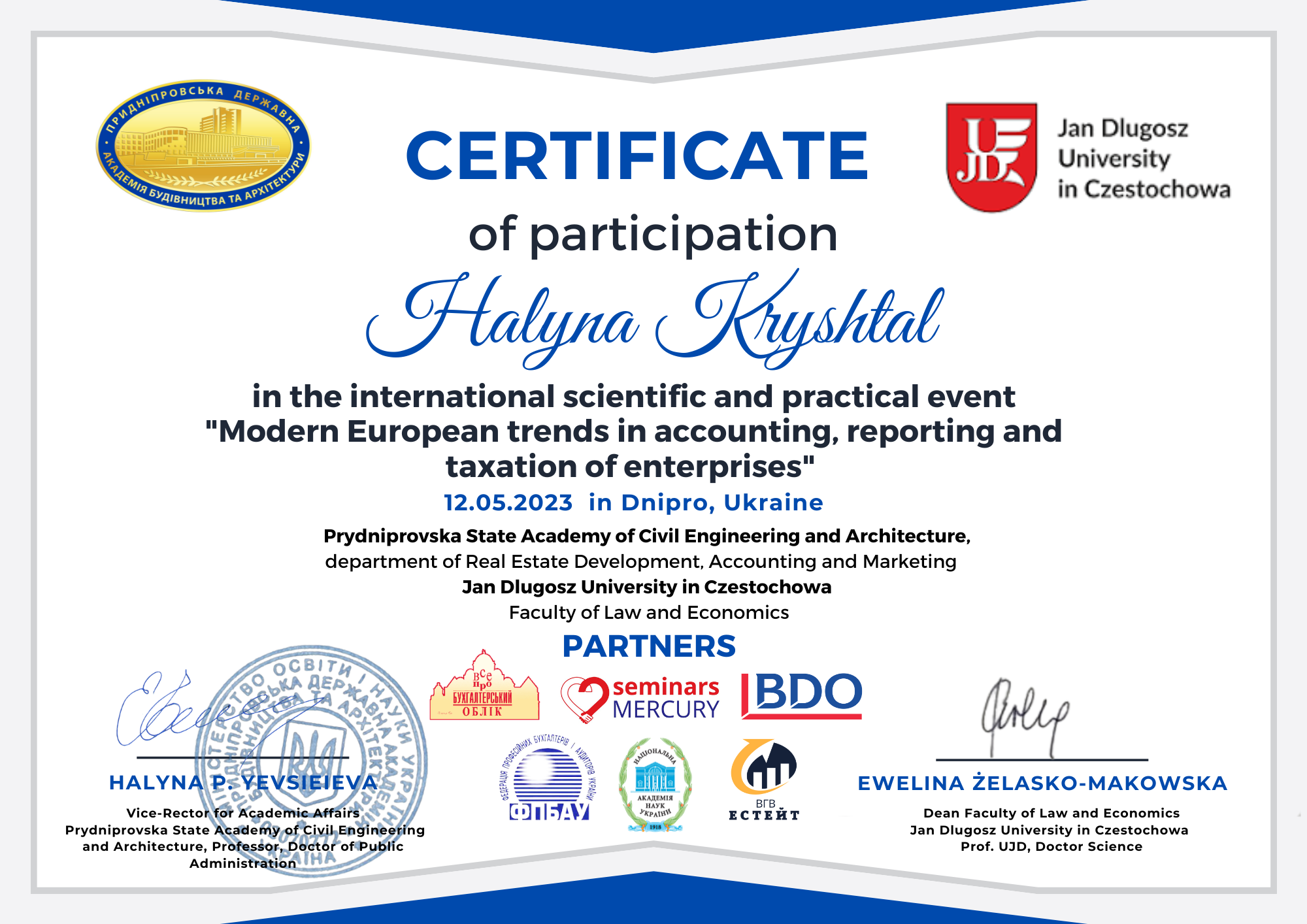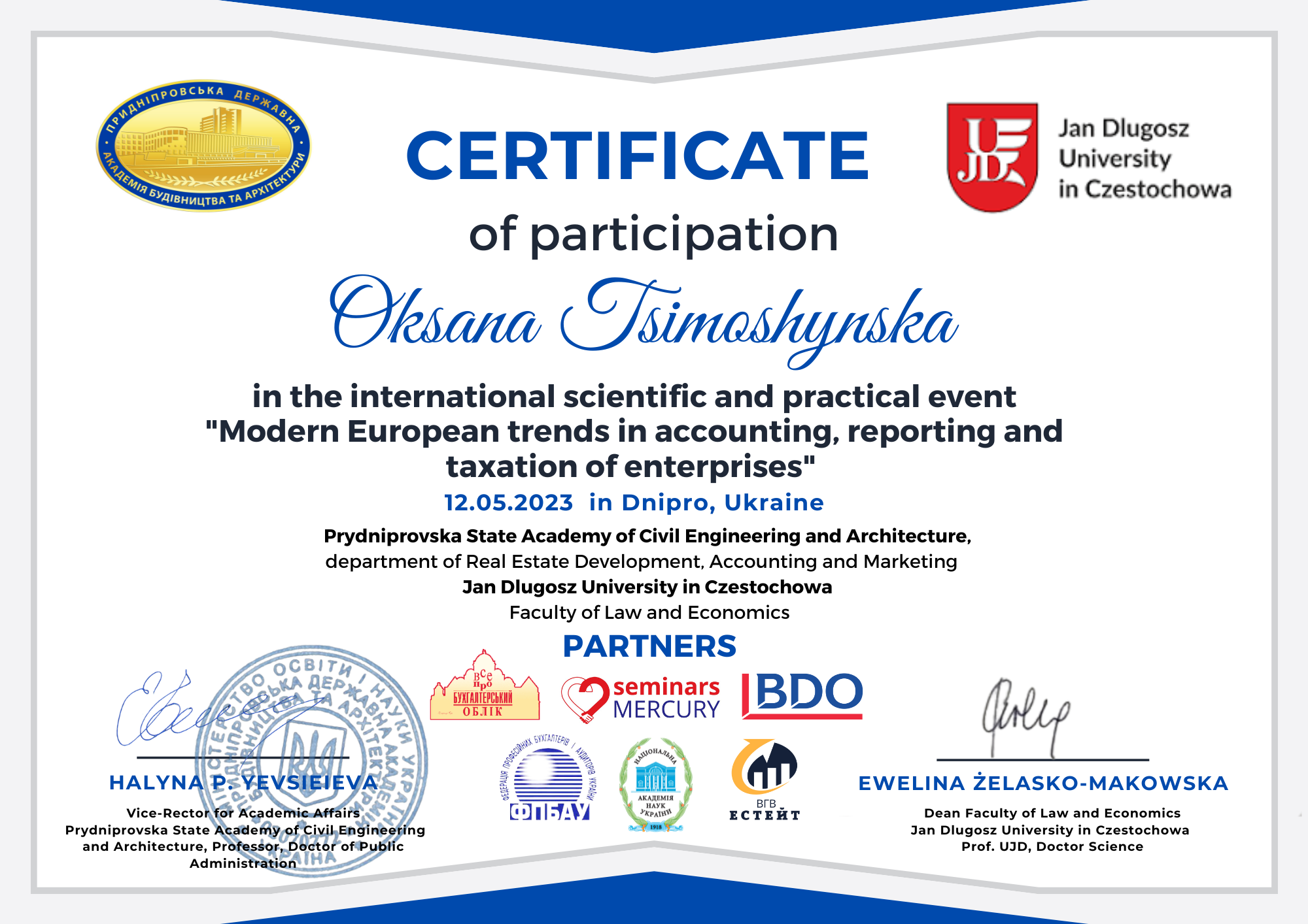 Міжнародний круглий стіл "Сучасні європейські тренди ведення обліку, подання звітності та оподаткування діяльності підприємств"