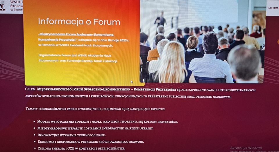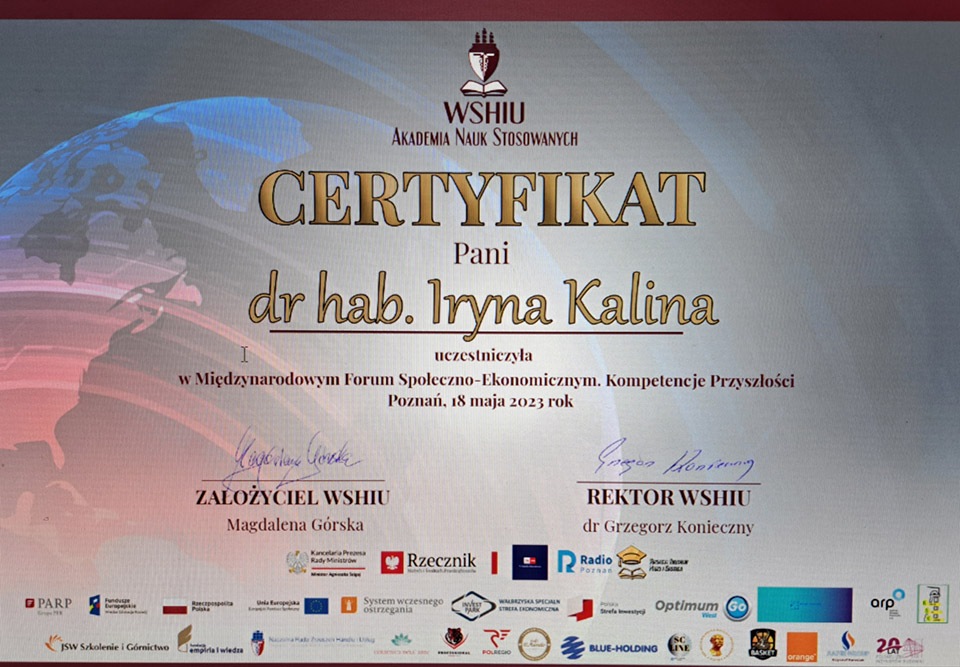 Завідувач кафедри менеджмент Ірина Каліна взяла участь в міжнародному соціально-економічному форумі "Компетенції майбутнього" організованим WSHIU Akademia Nauk Stosowanych в Познані.