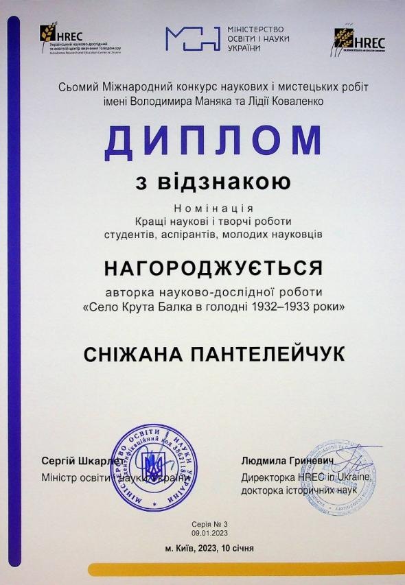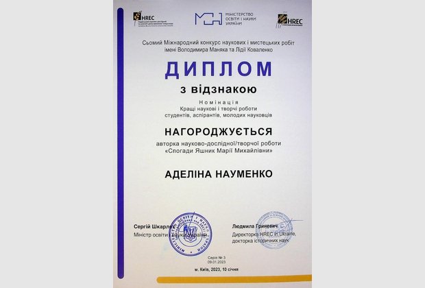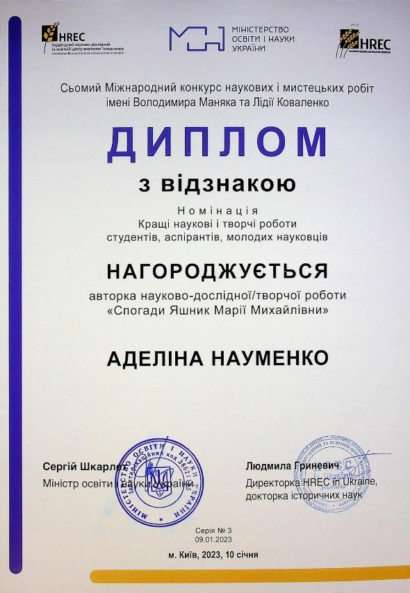 Вітаємо студентів ННІПСН та їх наукового керівника, к.і.н., доцента кафедри філософії та суспільних дисциплін Сторожук Ірину Анатоліївну з перемогою у VII Міжнародному міждисциплінарному конкурсі наукових і мистецьких робіт імені В. Маняка та Л. Коваленко у номінації «Кращі наукові і творчі роботи студентів, аспірантів, молодих науковців». Студентка спеціальності «Іноземна філологія» Науменко Аделіна та спеціальності «Журналістика» Пантелейчук Сніжана отримали дипломи з відзнакою та грошові винагороди для подальшого поглиблення і поширення результатів наукової і творчої діяльності.