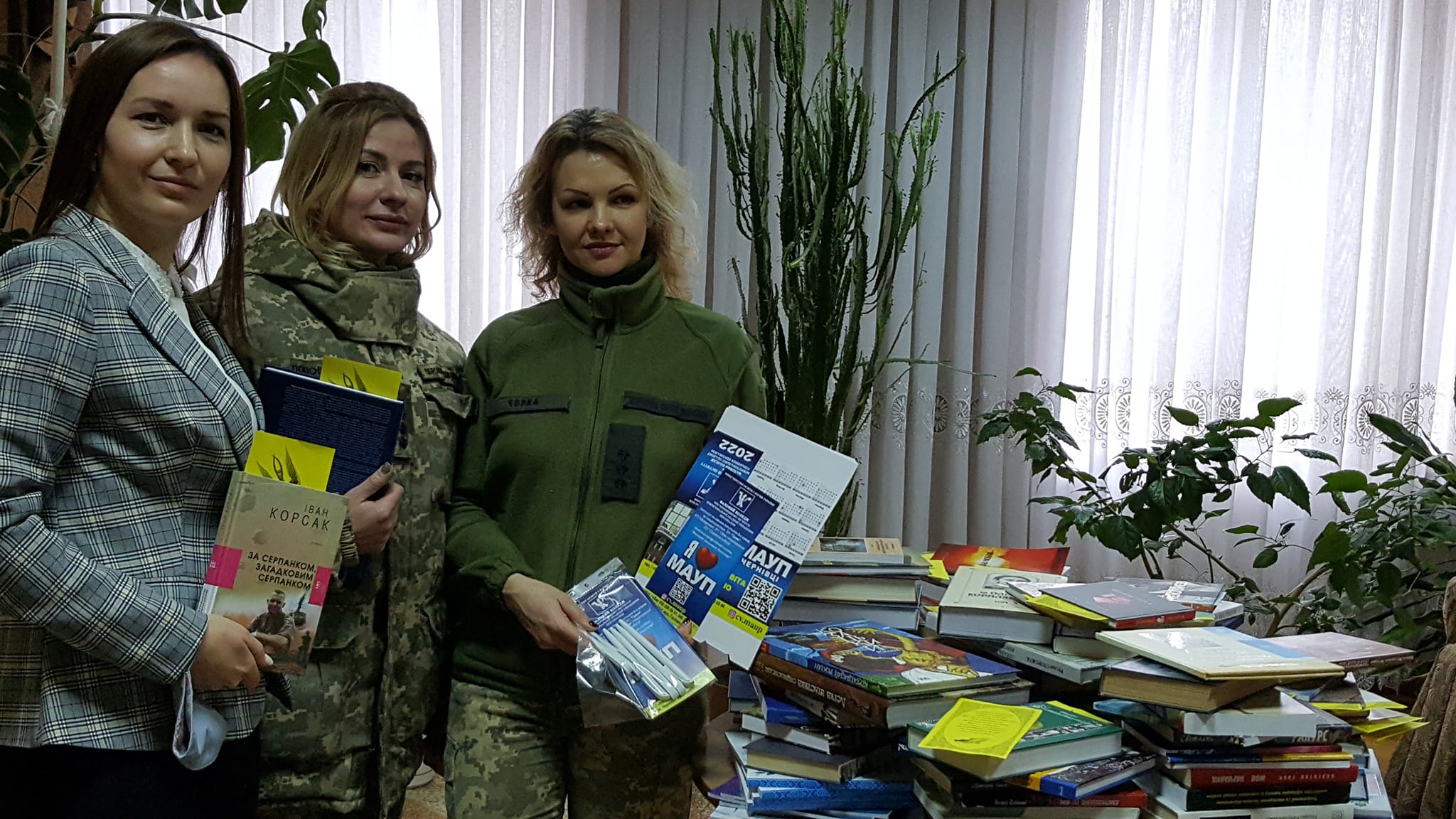 Голова товариства студентів та молодих учених Чернівецький інститут МАУП, заступник Голови РМВ МАУП - Жук Інна, разом із представниками Ради молодих учених при Міністерстві освіти та науки України, зокрема, Головою РМУ при МОН України - Олесею Ващук, координатором проєкту, Головою РМВ Національної академії сухопутніх військ ім. гетьмана Петра Сагайдачного- М.Верховутовою, секретарем РМУ при МОН України, головою офісу регіональних зустрічей РМУ при МОН України - Андрієм Хорольським, Головою ради молодих учених Чернівецької області - Ярославом Галаном та Головою РМУ ЧНУ ім. Ю.Федьковича - Анною Гакман, передали книги до шпиталю військової частини А1028, міста Чернівців, зібраних молодими ученими Чернівецької області.