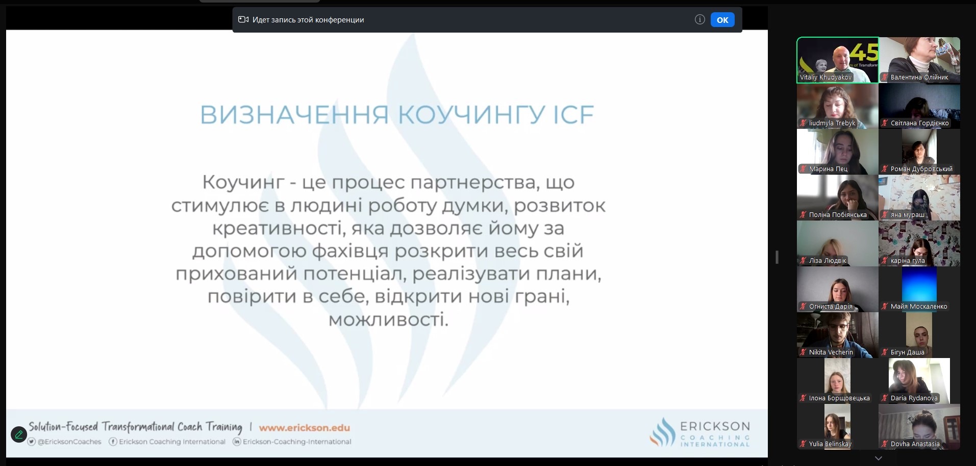 28 травня 2025 року студенти-психологи Хмельницького інституту МАУП денної і заочної форм навчання разом зі студентами Хмельницького університету управління та права ім. Леоніда Юзькова взяли онлайн-участь у міжнародному тренінгу «Вступ до коучингу».