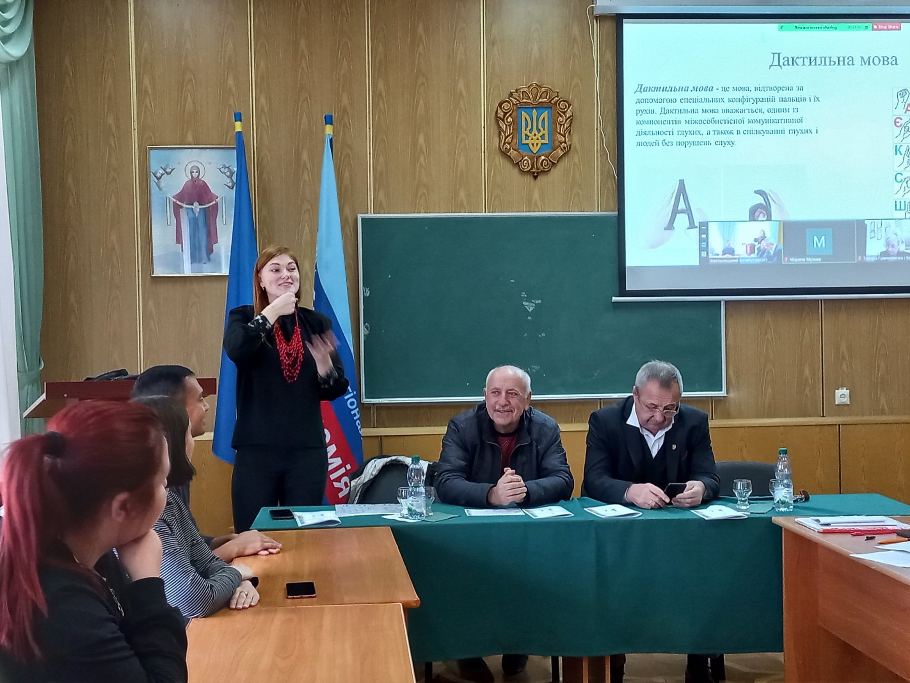 Даний захід супроводжувався перекладом жестовою мовою. Професійним перекладачем виступив Рудик Олександр Багірович.