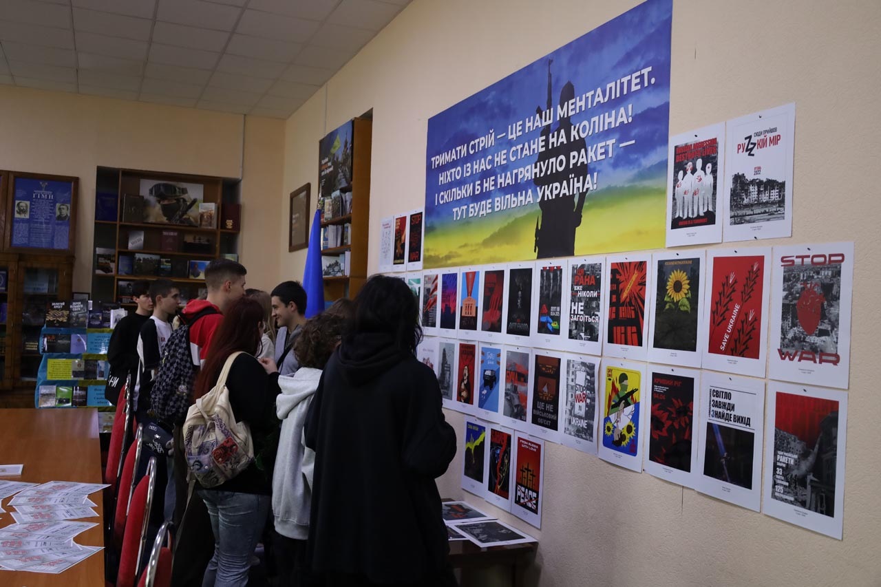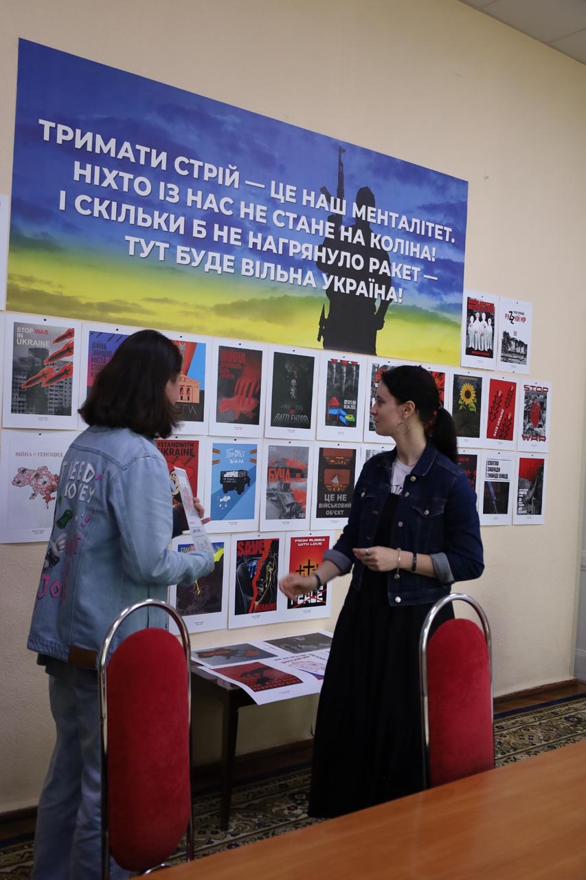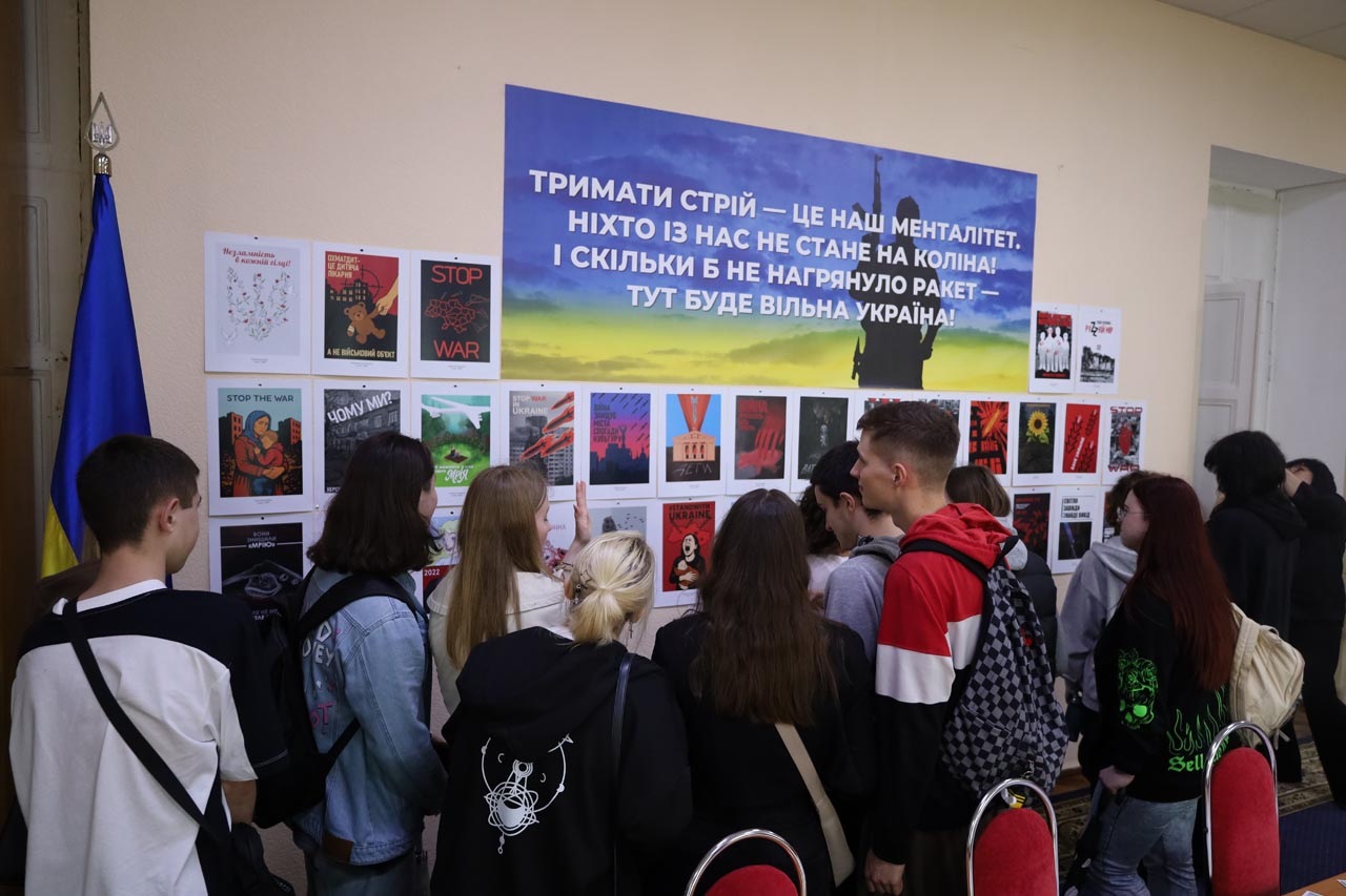 На виставці були представлені роботи здобувачів вищої освіти спеціальності «Дизайн» другого курсу навчання. Через графіку, колір, символи та особисте бачення, студенти передали власні емоції, думки й переживання, пов’язані з темою війни, героїзму та стійкості українського народу.