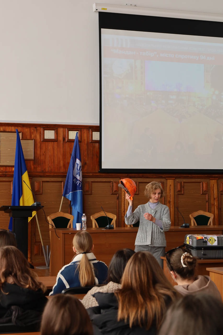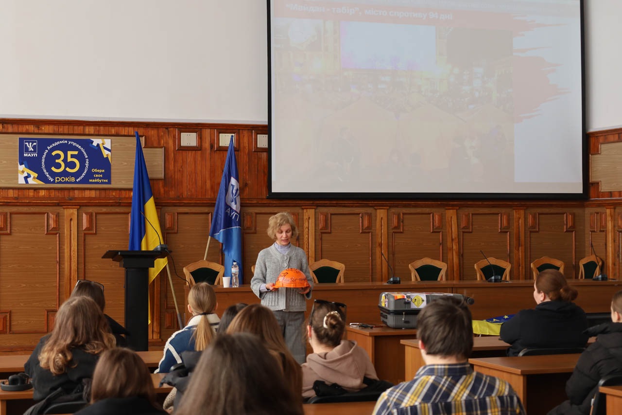 Під час цієї лекції, яка супроводжувалася інтерактивними кадрами подій листопада 2013 - лютого 2014 року, Світлана Скиба нагадала юним слухачам про головні цінності «Майдану», навчала розпізнавати фейки та ворожу пропаганду, закликала шанувати досягнення Революції Гідності, і, щонайголовніше, намагалася формувати емоційний зв’язок нинішньої молоді з учасниками тих героїчних подій – адже саме це є міцною основою пам’яті.