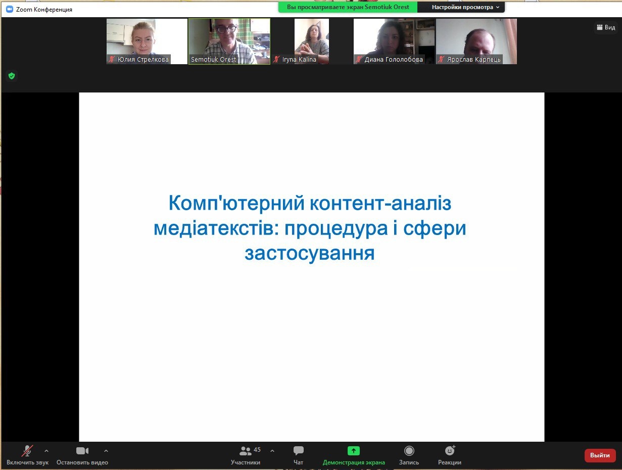 На кафедрі журналістики відбувся майстер-клас на тему «Комп'ютерний контент-аналіз медіатекстів: процедура і сфери застосування»