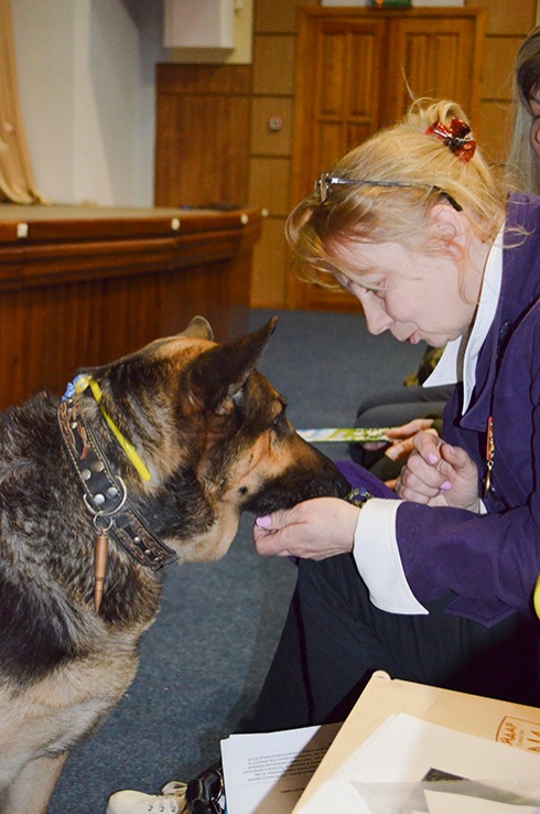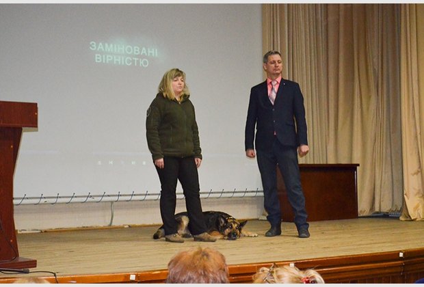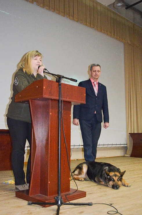 «Наймолодший волонтер» – вівчарка Баді, улюблениця всього батальйону «Айдар», героїня фільму «Заміновані вірністю» - терпеливо дочекавшись виходу на сцену, із задоволенням давала всім можливість «поспілкуватися» з собою (особливо за печиво) та сфотографуватися.