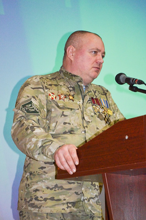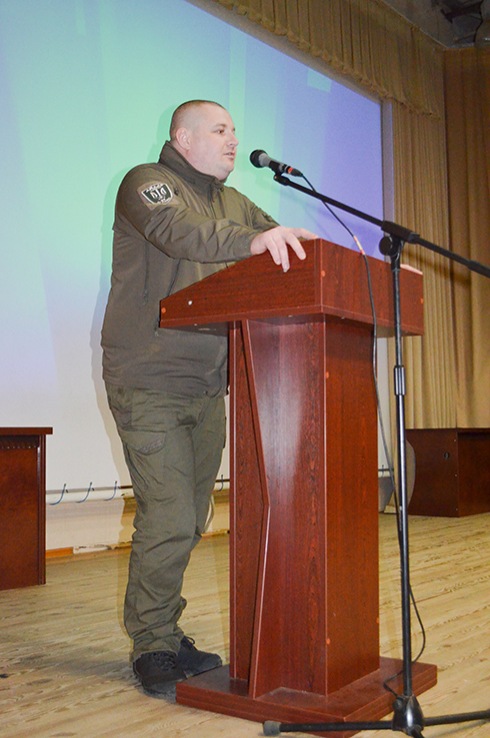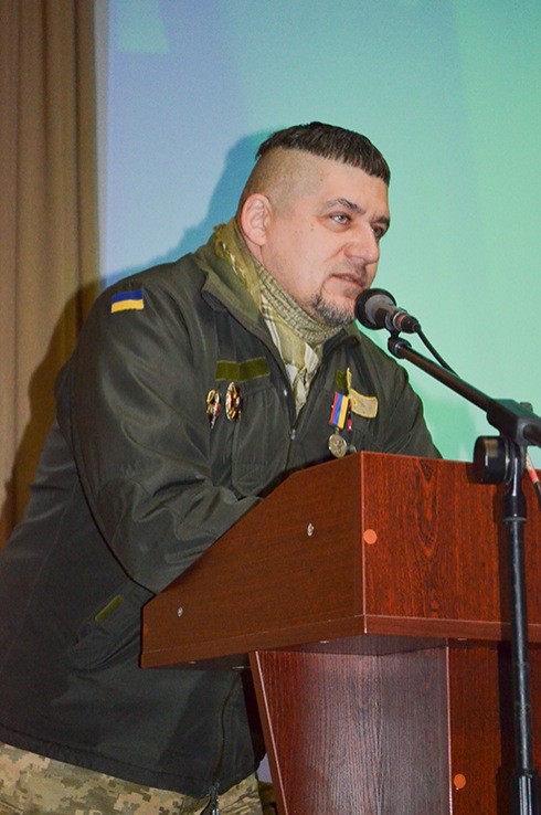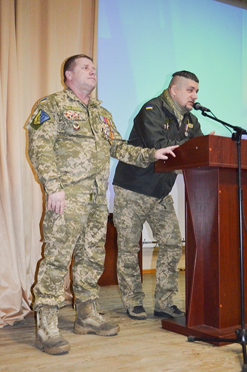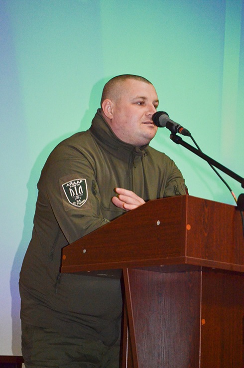 Колишній начальник штабу батальйону «Айдар» Валентин Лихоліт («Батя») протягом зустрічі не тільки поділився з молоддю спогадами, а й перед виступом побратимів «по-батьківськи» охарактеризував кожного.