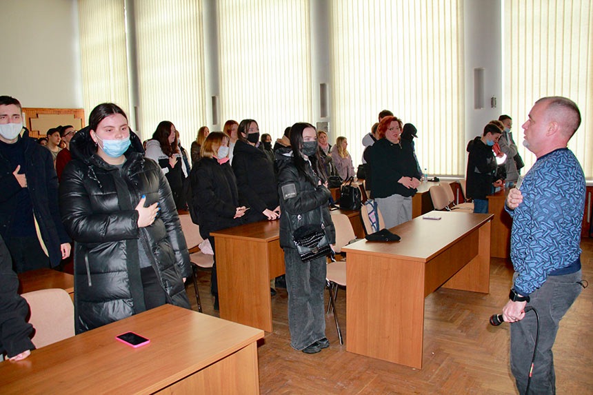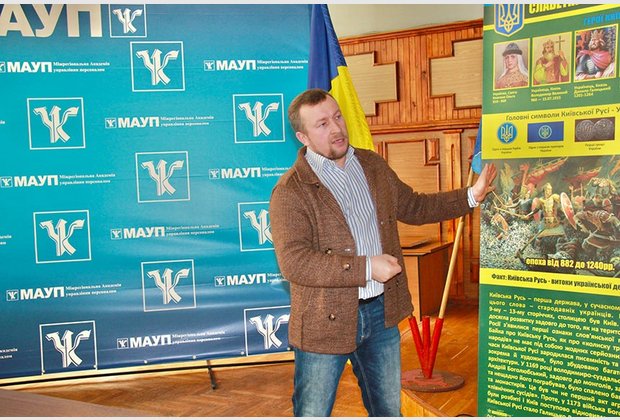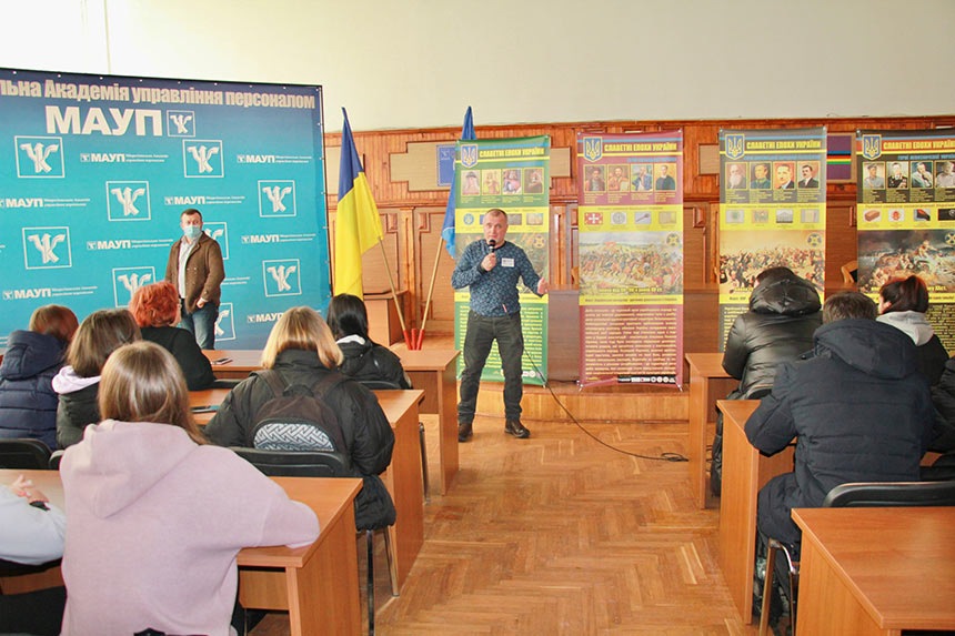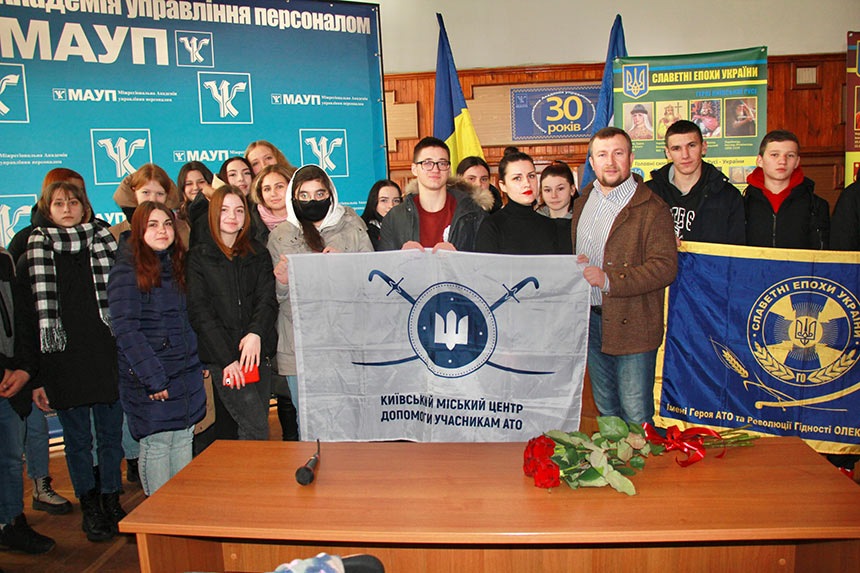 У першій частині зустрічі Олег Леонідович ознайомив студентів Міжрегіональної Академії управління персоналом та ЕПТ при МАУП із метою проєкту, зазначивши, що в такий спосіб, йому дуже хотілось би донести молодому поколінню про могутність нашого древнього роду та міць нації, яка за всі віки існування не зігнулась, а навпаки – починає відтворення великої історичної державності. Також він поділився з студентами власною трагедією: спогадами про свого сина, учасника АТО, який загинув від кулі сепаратиста, захищаючи Донецький аеропорт.