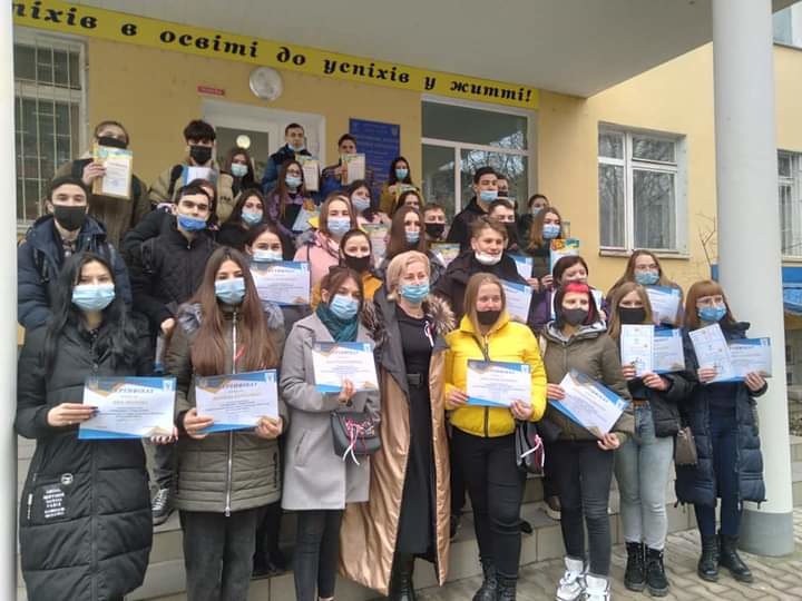 У Придунайській філії МАУП свято зустрічі Весни відзначилося загальним привітанням директорки філії професорки Гуменникової Т.Р. студентів І-V курсів та урочисте вручення отриманих ними грамот та сертифікатів, якими за участь в онлайн-заходах були нагороджені студенти. Їх виявилось дуже багато, про що свідчить колективне фото студентів, отримавших нагороди.