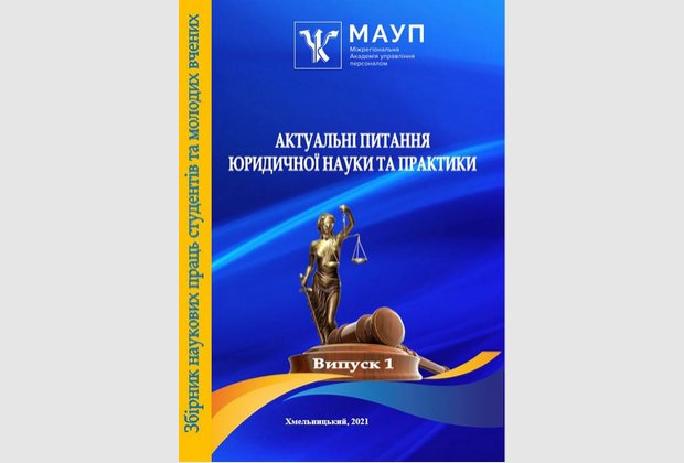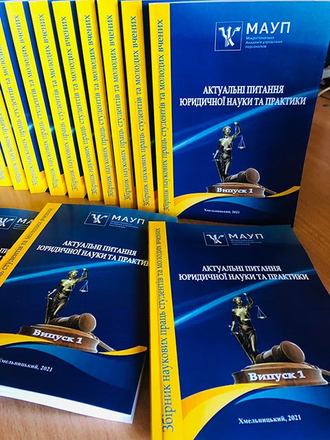 Наукове товариство студентів та молодих вчених Хмельницького інституту МАУП презентує збірник наукових праць «АКТУАЛЬНІ ПИТАННЯ ЮРИДИЧНОЇ НАУКИ ТА ПРАКТИКИ»