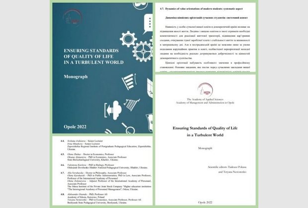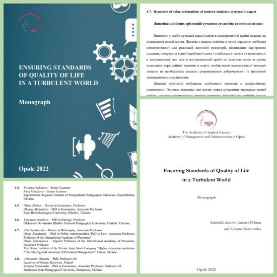 У м.Ополе (Польща) Академія прикладних наук спільно з Академією управління та адміністрування видала друком колективну монографію "Забезпечення стандартів якості життя в турбулентному світі" під редакцією Тадеуша Покуси і Тетяни Несторенко.
