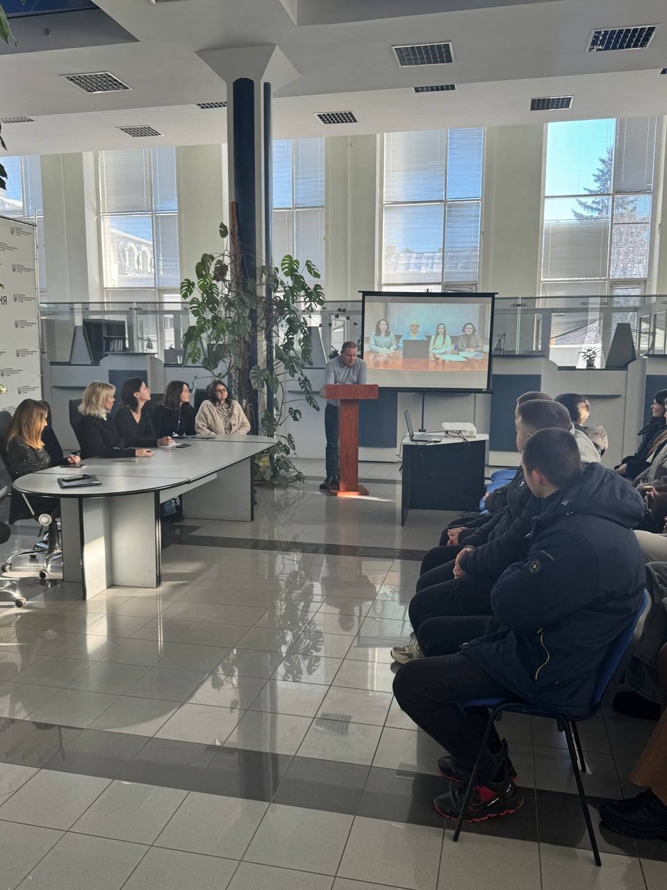З особливостями діяльності відділу державної реєстрації громадських формувань у Хмельницькій області студентів ознайомила заступник начальника відділу Наталія Чорна, а про особливості роботи відділу взаємодії з субʼєктами державної реєстрації доповіла Наталія Заяць, про відділ розгляду звернень та забезпечення колегії з розгляду скарг на рішення, дії або бездіяльність державного реєстратора - заступник начальника відділу Інна Возборська.