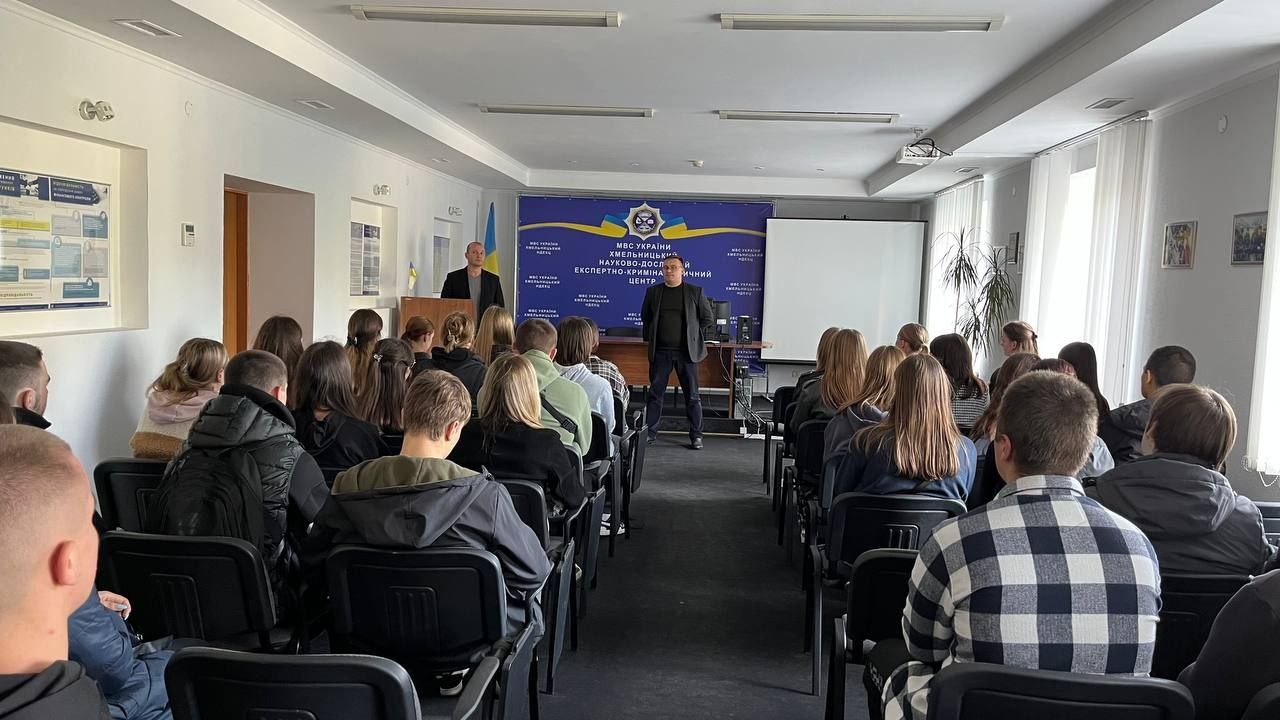 У рамках заходу "Тиждень юридичних знань", який узвичаєно у Хмельницькому інституті МАУП, бакалаври та магістри спеціальностей "Право" та "Правоохоронна діяльність" 9 жовтня 2024 року відвідали Хмельницький науково-дослідний експертно-криміналістичний центр МВС України.