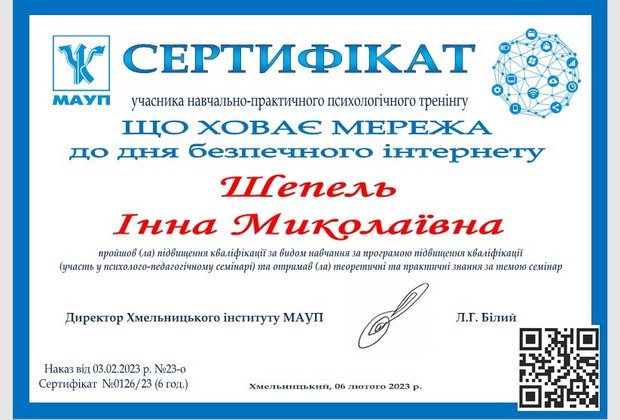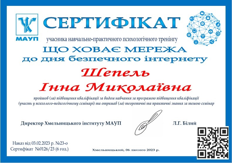 6 лютого 2023 року студенти 1-2 курсів спеціальності «Психологія» до Дня безпечного інтернету взяли участь у навчально-практичному психологічному тренінгу «Що ховає мережа?».