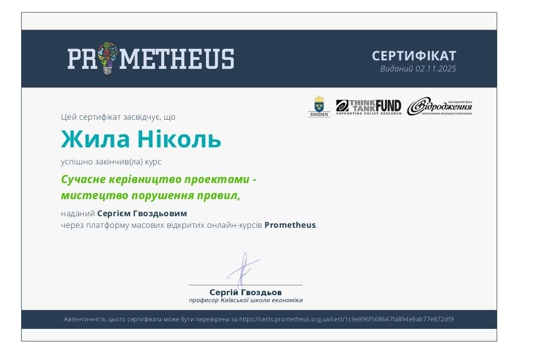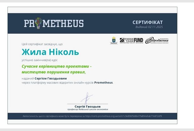 Цього тижня здобувачі вищої освіти 4 курсу денної форми навчання кафедри економіки та менеджменту філії успішно завершили додаткові курси на платформі Prometheus і отримали відповідні сертифікати.