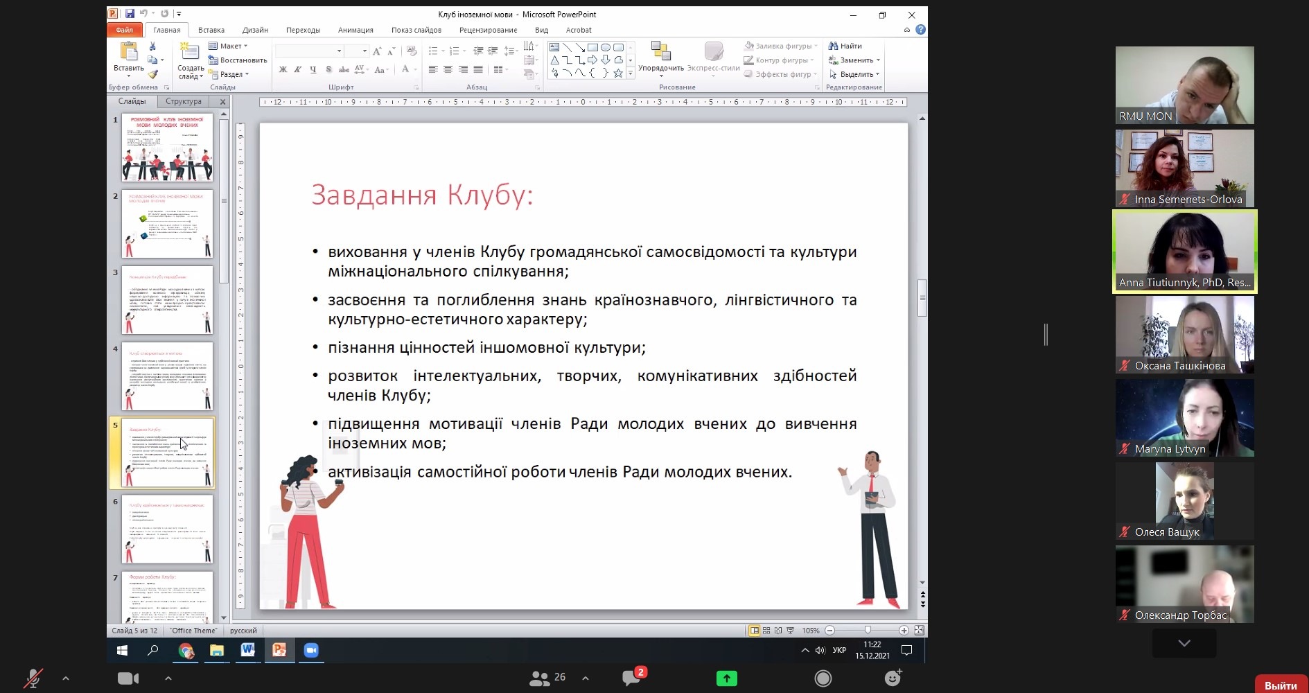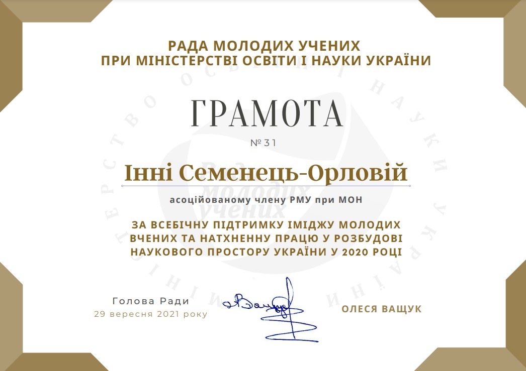 15 грудня відбулося підсумкове засідання Ради молодих вчених при Міністерстві освіти і науки України у 2021 році. Участь у заході взяла директор ННІУЕБ Семенець-Орлова І.А. У ході засідання було прийнято рішення започаткувати серію тренінгів та інших освітніх заходів під назвою Школа волонтерства - у рамках проекту співпраці РМВ при МОН з Британською радою. Рада молодих вчених при Міжрегіональній Академії управління персоналом буде долучатися до організаційного супроводу даної Школи та планує започаткувати діяльність окремого Центру волонтерської роботи. Також Семенець-Орловій І.А. як члену Ради молодих вчених при МОН було висловлено подяку за всебічну підтримку іміджу молодих вчених, натхненну працю з розбудови наукового простору України.