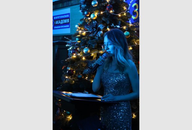 З вітальним словом до учасників балу звернулася Світлана Іванівна Прокопенко, заступниця директора Голосіївського економіко-правового фахового коледжу, побажавши гарного настрою, теплих емоцій і яскравих вражень у Новорічний час.