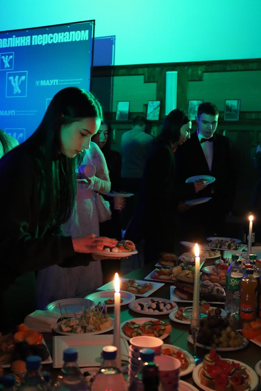 Початком святкового вечора став фуршет, що створив невимушену атмосферу для спілкування. Після цього ведуча відкрила бал і запросила гостей до святкової програми .