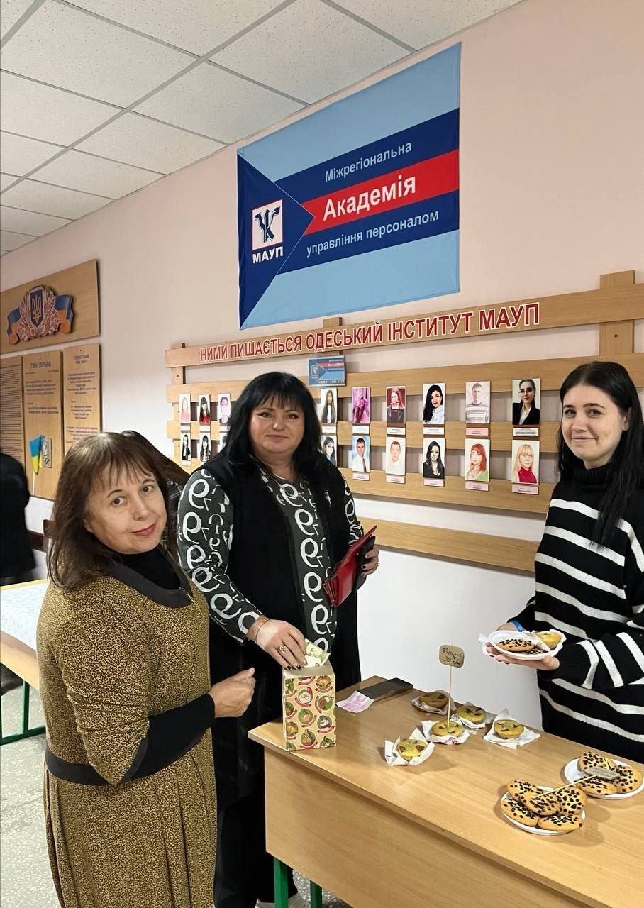 Дирекція, викладачі, студенти розкупили все, зібрано 4470 гривень. На зібрані кошти Студентська рада Одеського інституту МАУП підготувала посилки - "коробки тепла" для відправки на фронт студентам Одеського інституту МАУП - воїнам ЗСУ.