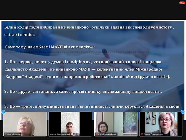 Студентський актив Ради самоврядування та дирекція філії провели вікторину на знання символіки закладу вищої освіти МАУП, а саме: емблеми та прапору.