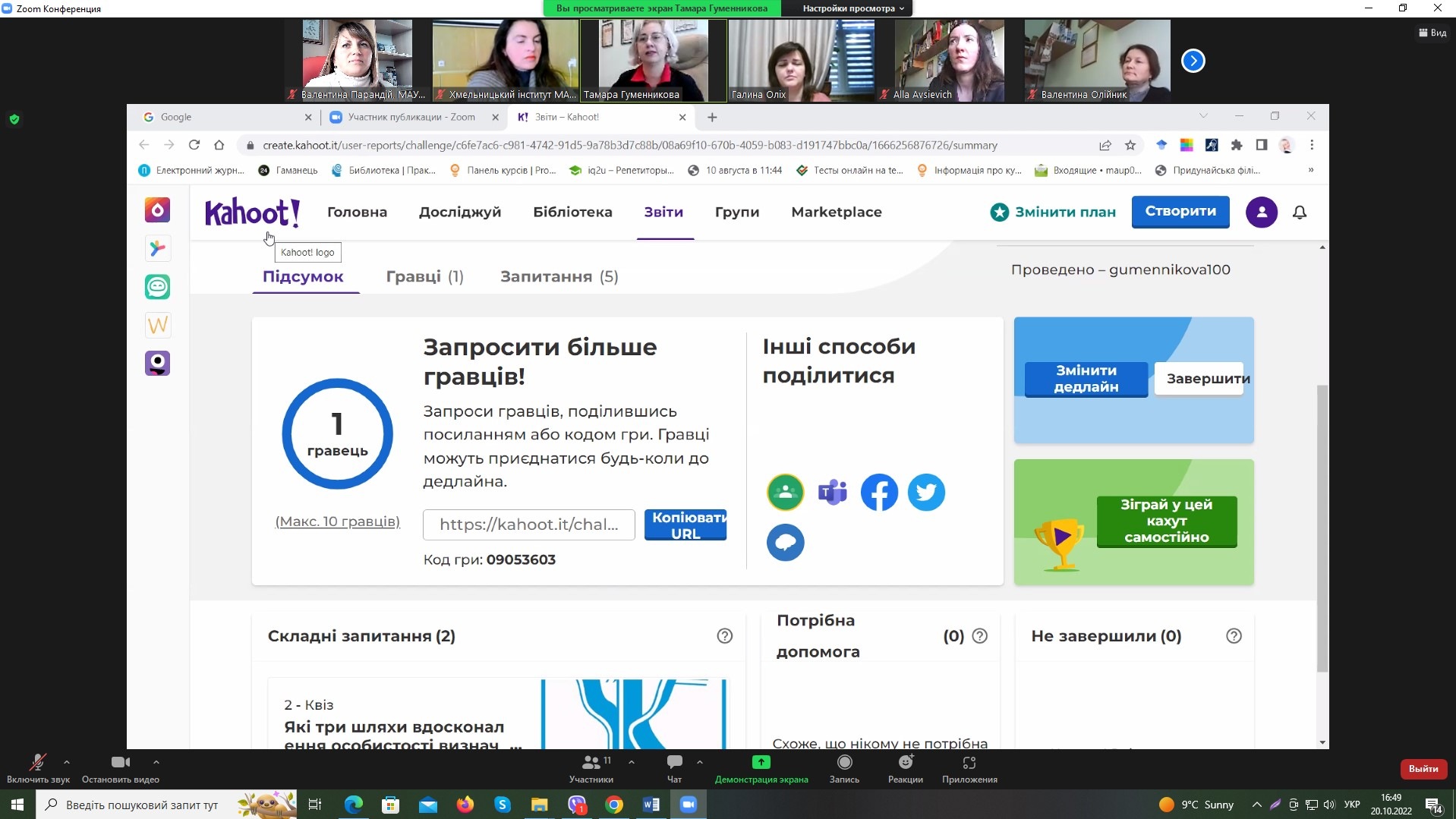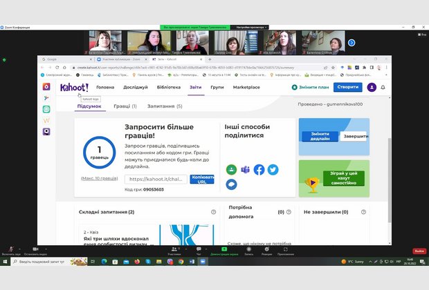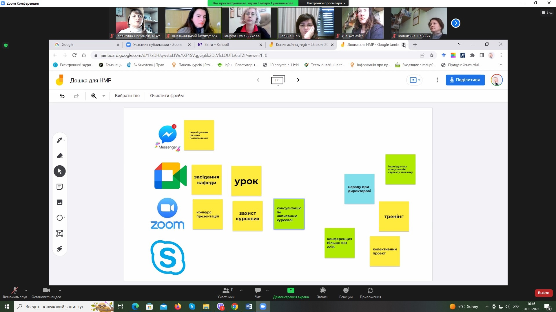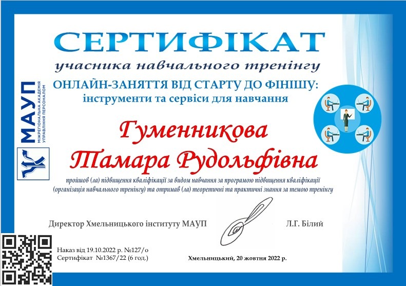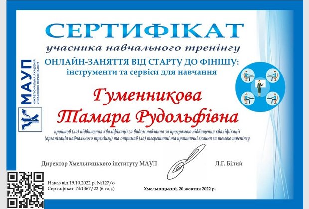 В рамках засідання Науково-методичної ради відбувся навчальний тренінг «Онлайн-заняття від старту до фінішу: інструменти та сервіси для навчання», який провела доктор педагогічних наук, професор; професор кафедри психології Хмельницького інституту МАУП Гуменникова Тамара Рудольфівна.