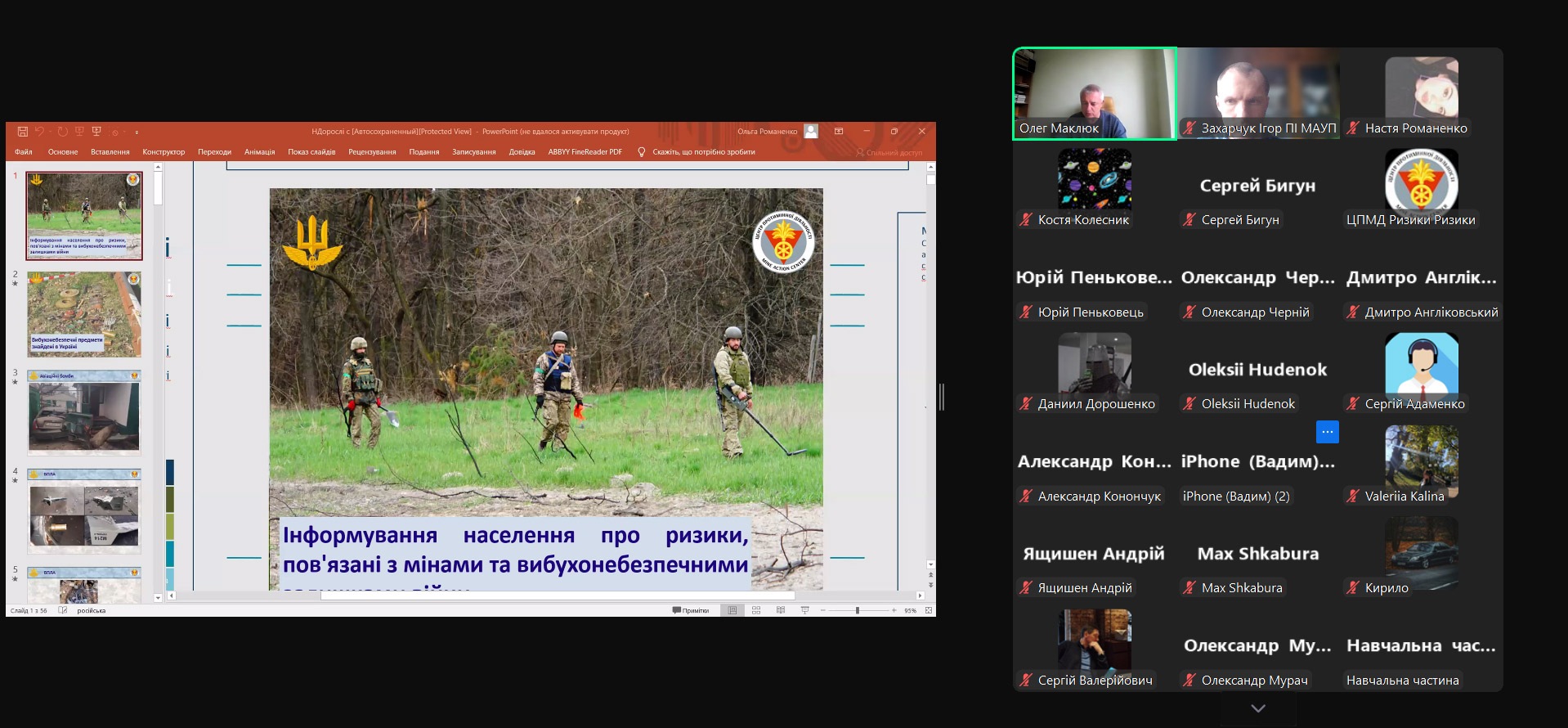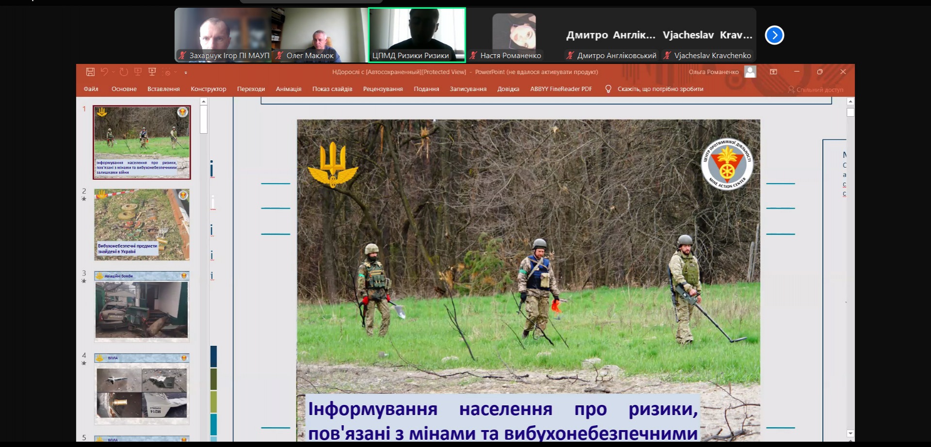 Онлайн зустріч з представниками Центру протимінної діяльності пройшла в Північноукраїнському інституті МАУП